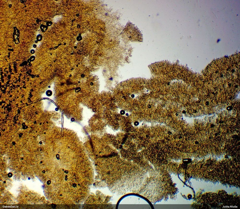 Nemikroskopēju, tikai vizuāli apskatīju. Ja kaut kad pētīšu šo sugu grupu, tad mikroskopiski pārbaudīšu.