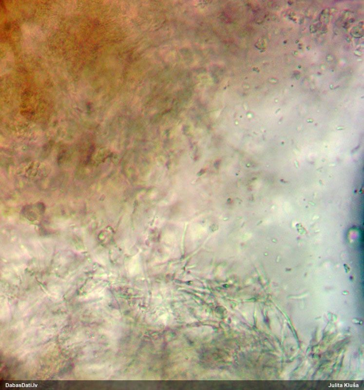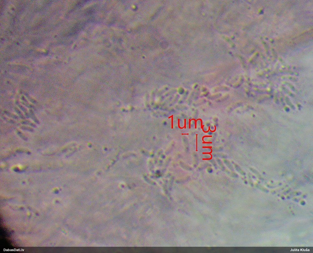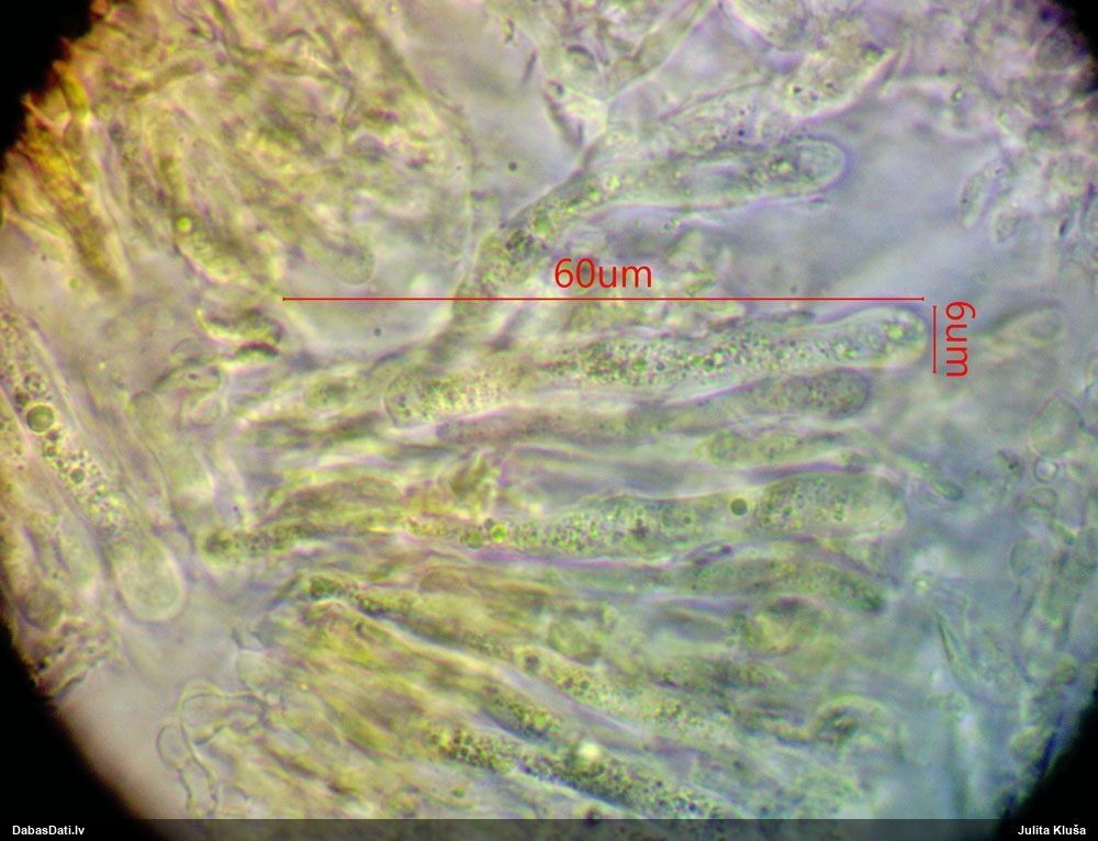 Nemikroskopēju, jo vajadzētu būt C.purpurea, tomēr, ja sanāks, mikroskopiski papētīšu, jo šai ar savulaik ar sporu izmēriem mums un aprakstos kaut kas nesapasēja.