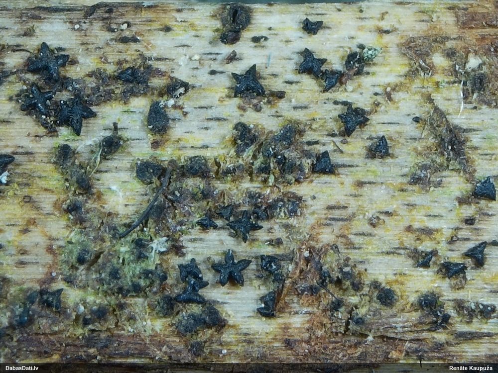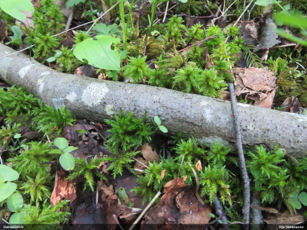 Skujkoks nav par tuvumā. Ir tikai lapu koki - lazda, kastanis, ābelītes. Otrpus celmam (D pusē) lejasdaļā, ko pamanīju pirmo, arī bija kaut kas no šim līdzīga, bet tik izsporojies, ka palicis tikai paliels brūns sporu pleķis. Intriga pavērot nākamgad.