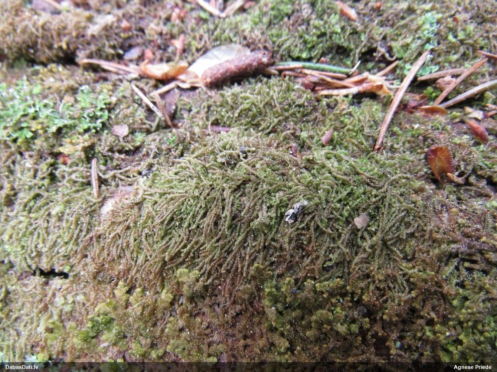 Ļoti ļoti labs atradums! Šo varētu likt aizsargājamo sugu sarakstā, jo pasaulē reti ziņota, Latvijā tikai izcilās vietās atrasta. Par laimi, paraugā bija arī nobrieduši eksemplāri, kam sporu mākonis knapi turējās klāt - un tā ir arī raksturīga sugas pazīme. Bet visuzskatāmākais te ir sporu virsmas raksts, tāpēc te svarīgi redzēt sporas vislielākajā palielinājumā.
