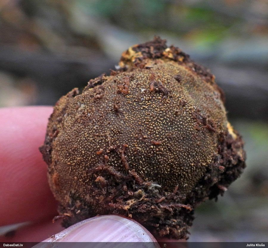 Hmm, nepievērsu tam uzmanību, bet tas interesanti, paldies! Vispār izskatās pēc vālenītes, ne kūlītes, speciāli salīdzināju aprakstus ar Stemonitis splendens, bet mikroskopiski tomēr atbilst visām kūlītes pazīmēm, un abas mikroskopētās kūlītes - vienādas. Tur kāds skujkoks blakus neaug?