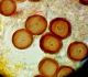Arī šis paraugs pilnībā saēsts, bet kastītē vismaz kaut kādas pulvera atliekas saglabājušās. Sporas atradās arī nebojātas, smuki redzamas tumšāku kārpu grupas, vienīgais - priekš rūsganā ragansviesta par lielu..