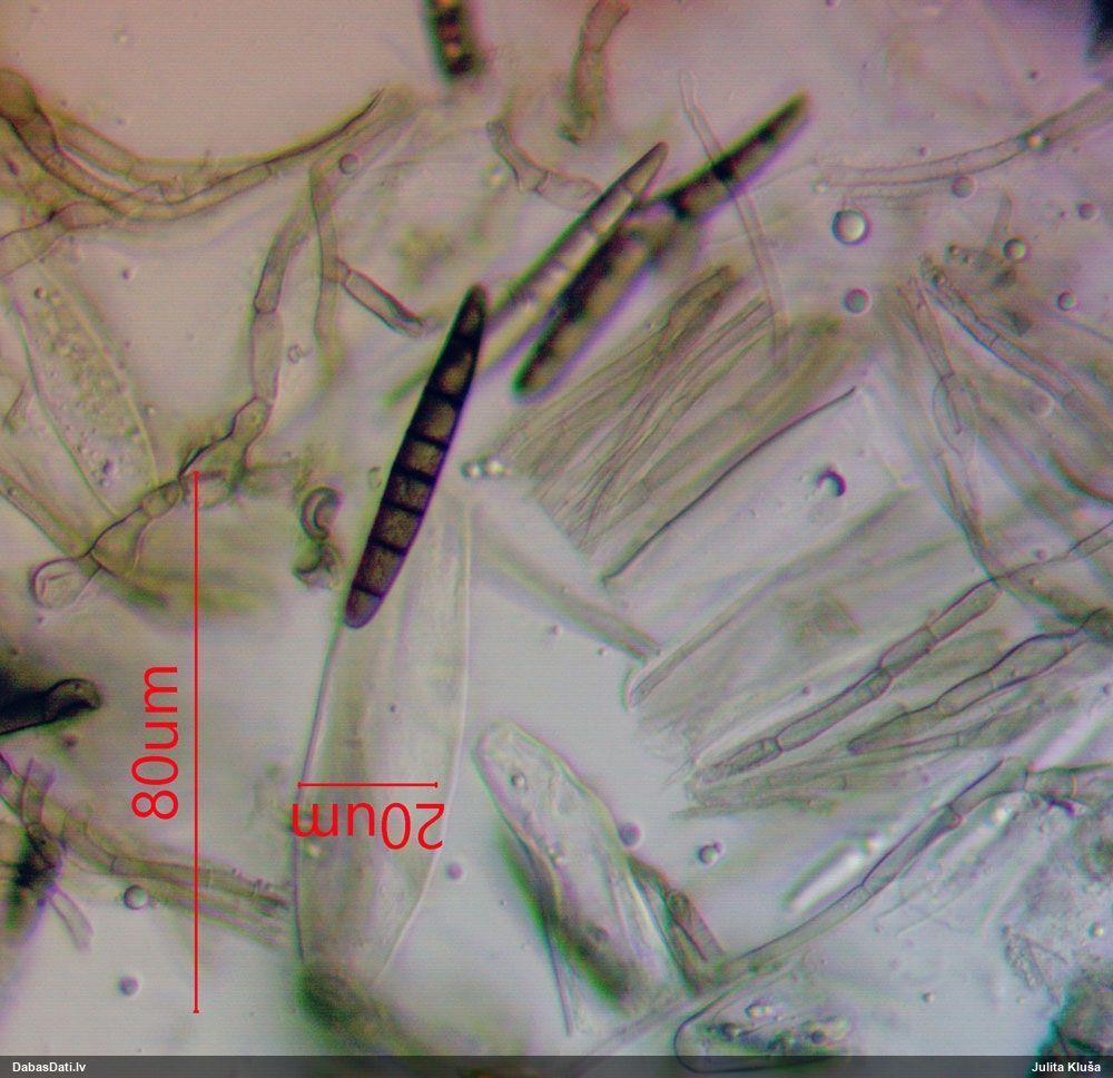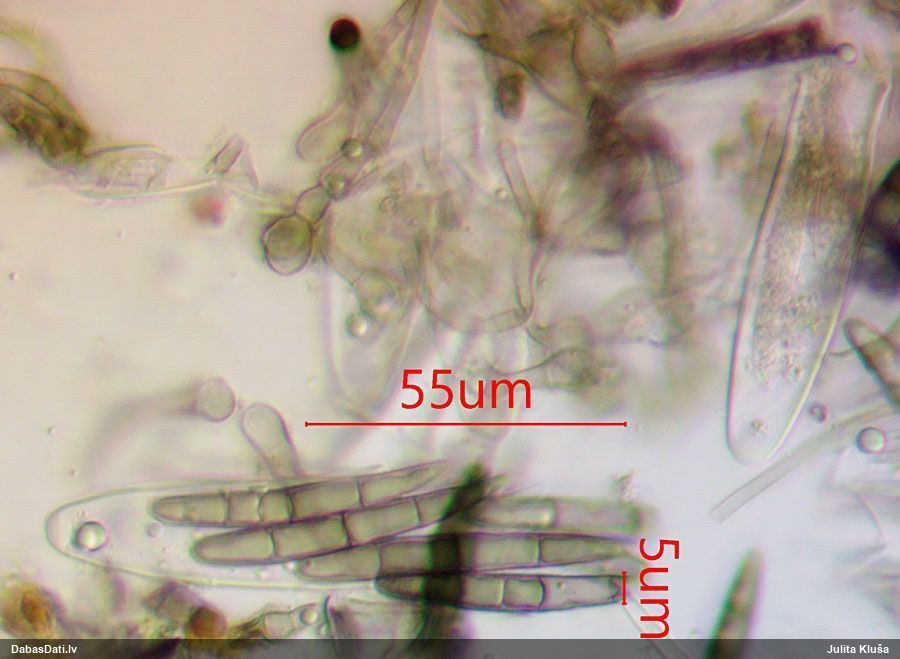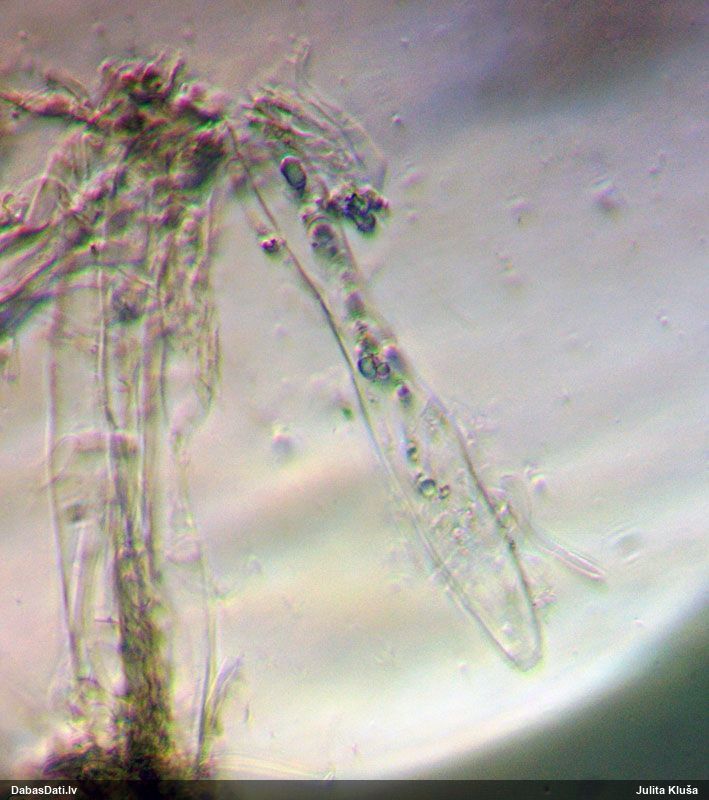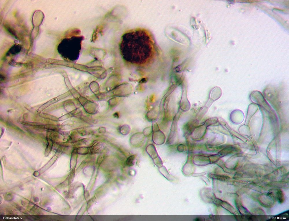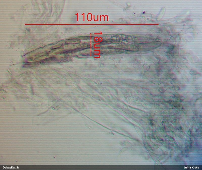 Nemikroskopēju, tikai vizuāli apskatīju. Ja kaut kad pētīšu šo sugu grupu, tad mikroskopiski pārbaudīšu.