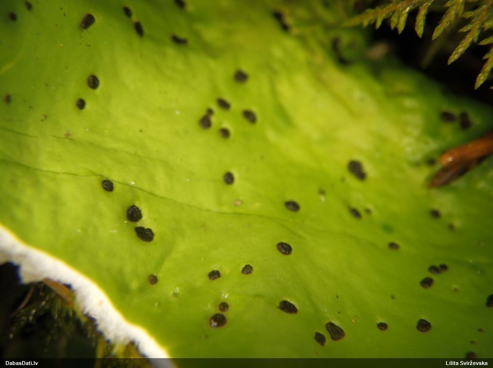 Ļoti ļoti labs atradums! Šo varētu likt aizsargājamo sugu sarakstā, jo pasaulē reti ziņota, Latvijā tikai izcilās vietās atrasta. Par laimi, paraugā bija arī nobrieduši eksemplāri, kam sporu mākonis knapi turējās klāt - un tā ir arī raksturīga sugas pazīme. Bet visuzskatāmākais te ir sporu virsmas raksts, tāpēc te svarīgi redzēt sporas vislielākajā palielinājumā.