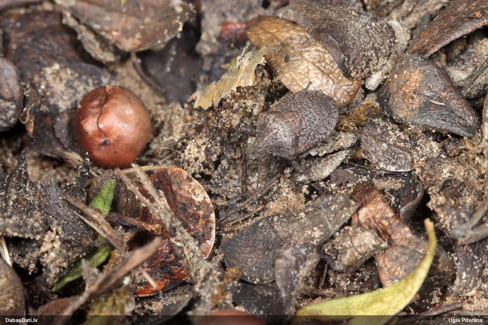 Arī šis paraugs pilnībā saēsts, bet kastītē vismaz kaut kādas pulvera atliekas saglabājušās. Sporas atradās arī nebojātas, smuki redzamas tumšāku kārpu grupas, vienīgais - priekš rūsganā ragansviesta par lielu..