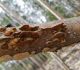 Skujkoks nav par tuvumā. Ir tikai lapu koki - lazda, kastanis, ābelītes. Otrpus celmam (D pusē) lejasdaļā, ko pamanīju pirmo, arī bija kaut kas no šim līdzīga, bet tik izsporojies, ka palicis tikai paliels brūns sporu pleķis. Intriga pavērot nākamgad.