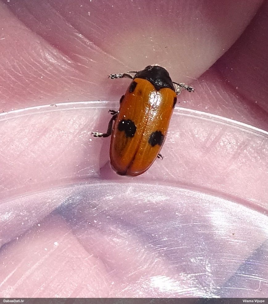 Šis tāds ne pārāk pārliecinošs. Sariņi uz segspārniem drīzāk gaiši, kaut tas varētu būt arī dēļ atspīduma. Priekškrūšu vairogs ar tā kā pārāk spalvains priekš A.sanguinolenta (varbūt atkal dēļ saules atspīduma). Arī galvas aizmugurējie stūri nav redzami. Lai paliek kā sp., ja vien nav kāda papildus informācija.