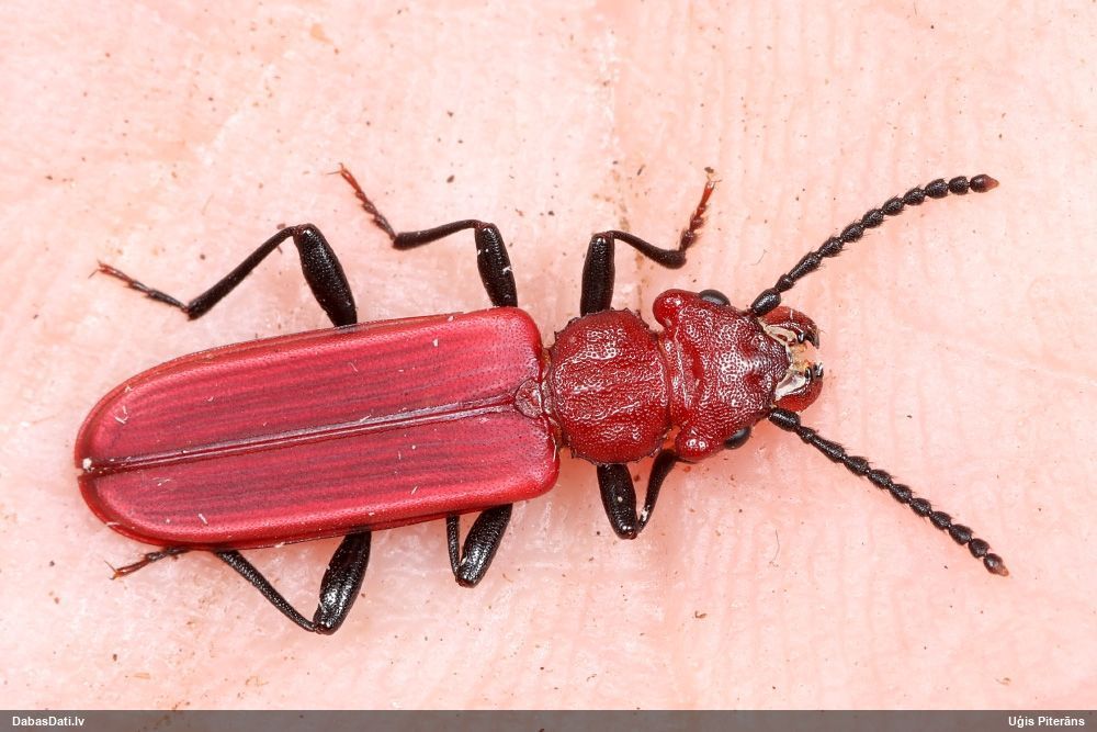 Šis tāds ne pārāk pārliecinošs. Sariņi uz segspārniem drīzāk gaiši, kaut tas varētu būt arī dēļ atspīduma. Priekškrūšu vairogs ar tā kā pārāk spalvains priekš A.sanguinolenta (varbūt atkal dēļ saules atspīduma). Arī galvas aizmugurējie stūri nav redzami. Lai paliek kā sp., ja vien nav kāda papildus informācija.