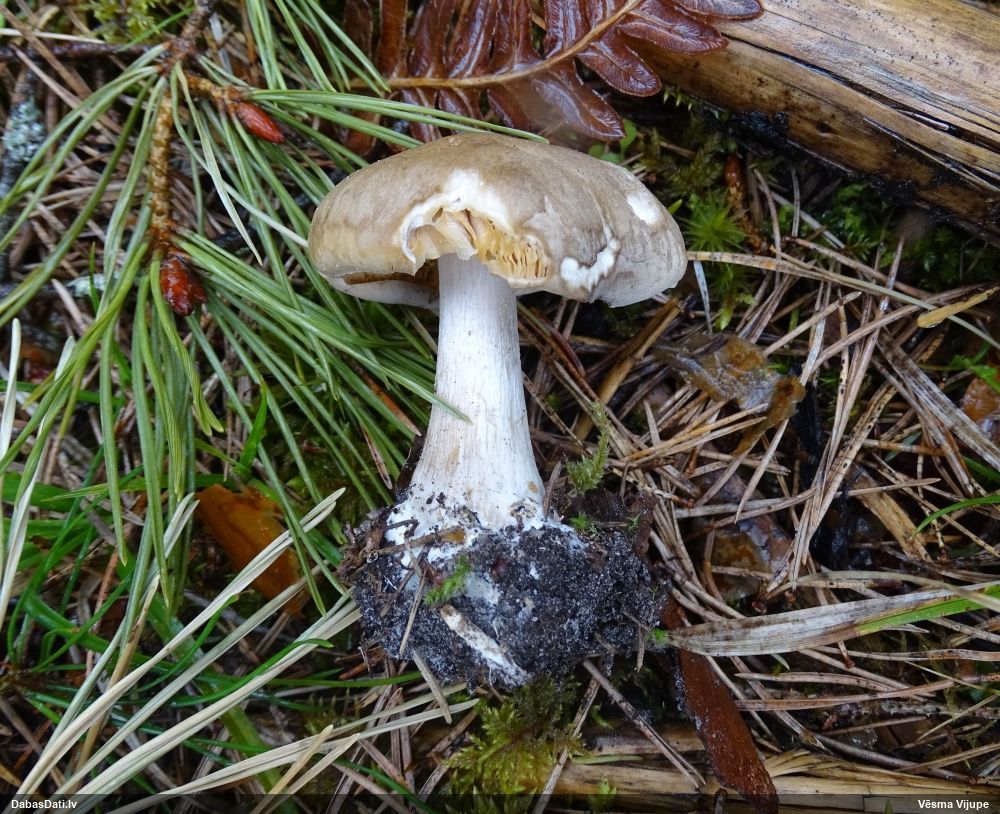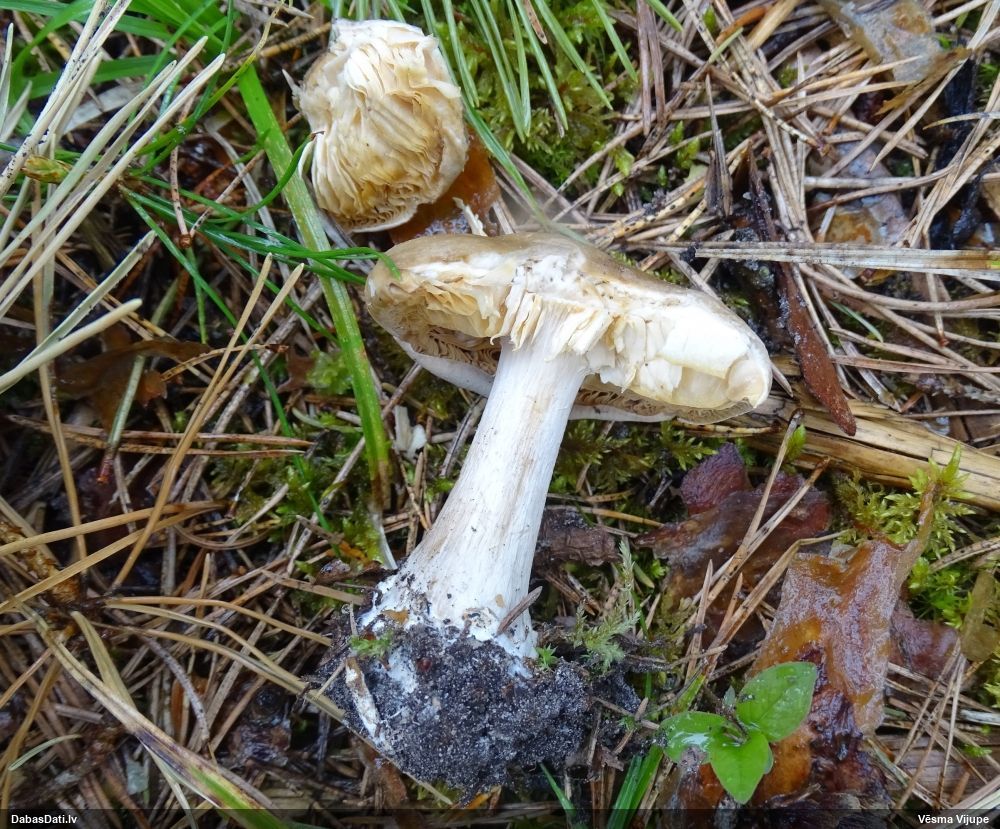 Šim Vijas paraugam iekšas precīzi tādas pašas - baltdzeltenas, ar kapilīciju ar maziem mezgliem, un virsma balta. Sporas gan lielākas: https://dabasdati.lv/lv/observation/b146f03a39b8789e2897007d9e464255/