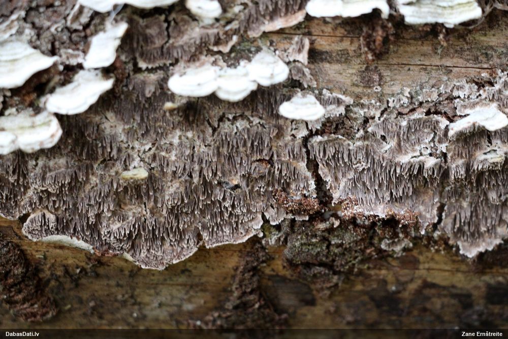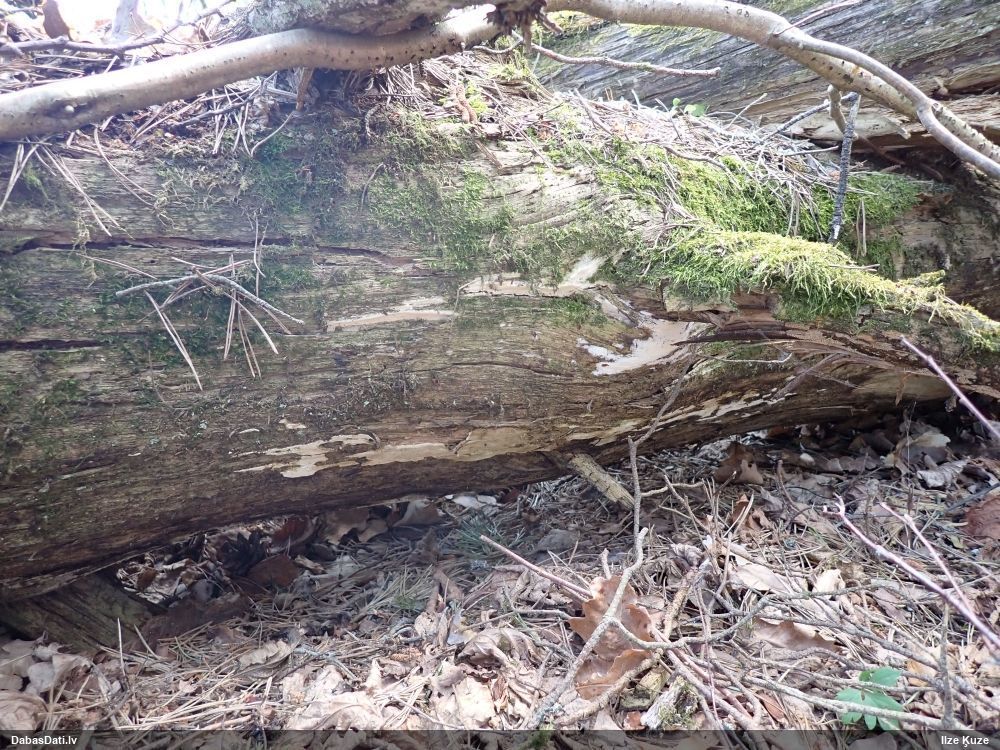 Skujkoks nav par tuvumā. Ir tikai lapu koki - lazda, kastanis, ābelītes. Otrpus celmam (D pusē) lejasdaļā, ko pamanīju pirmo, arī bija kaut kas no šim līdzīga, bet tik izsporojies, ka palicis tikai paliels brūns sporu pleķis. Intriga pavērot nākamgad.