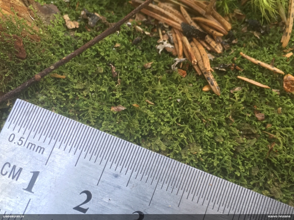 Ļoti ļoti labs atradums! Šo varētu likt aizsargājamo sugu sarakstā, jo pasaulē reti ziņota, Latvijā tikai izcilās vietās atrasta. Par laimi, paraugā bija arī nobrieduši eksemplāri, kam sporu mākonis knapi turējās klāt - un tā ir arī raksturīga sugas pazīme. Bet visuzskatāmākais te ir sporu virsmas raksts, tāpēc te svarīgi redzēt sporas vislielākajā palielinājumā.