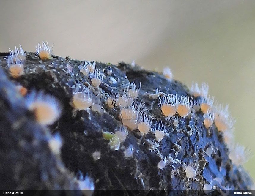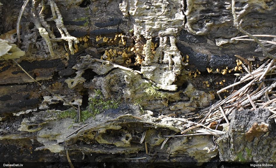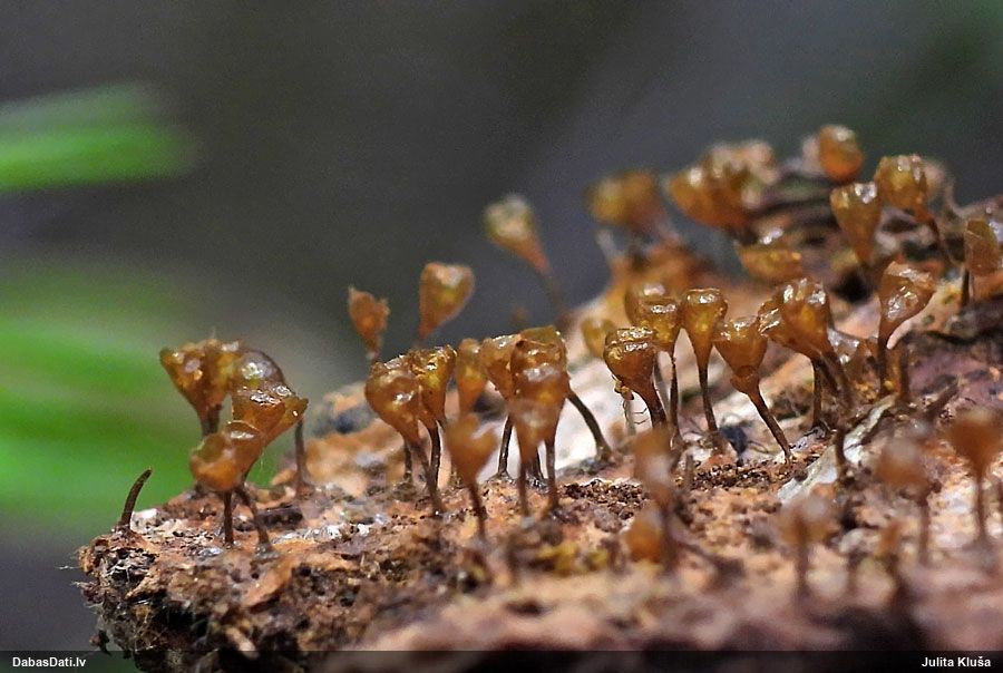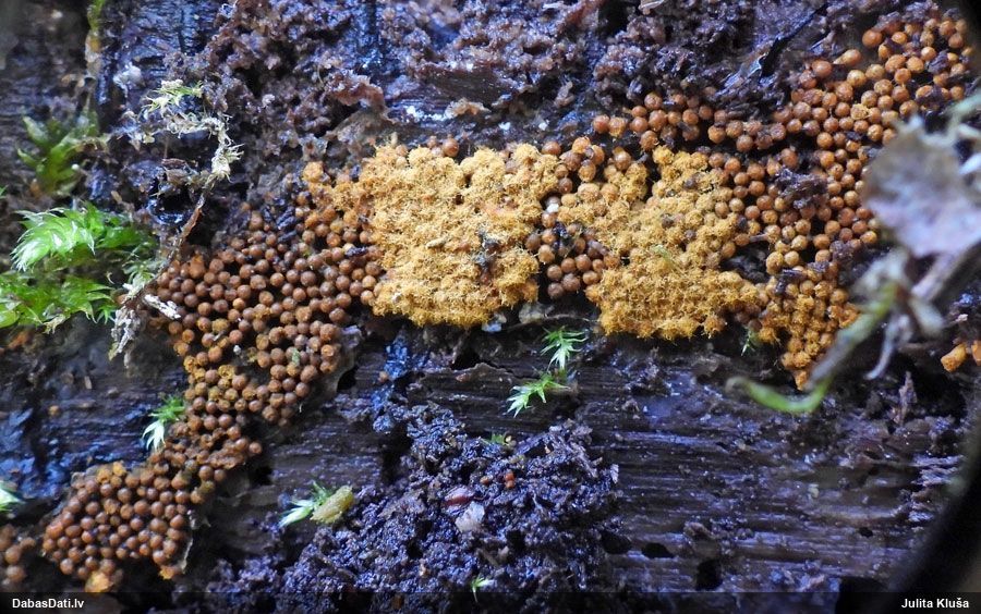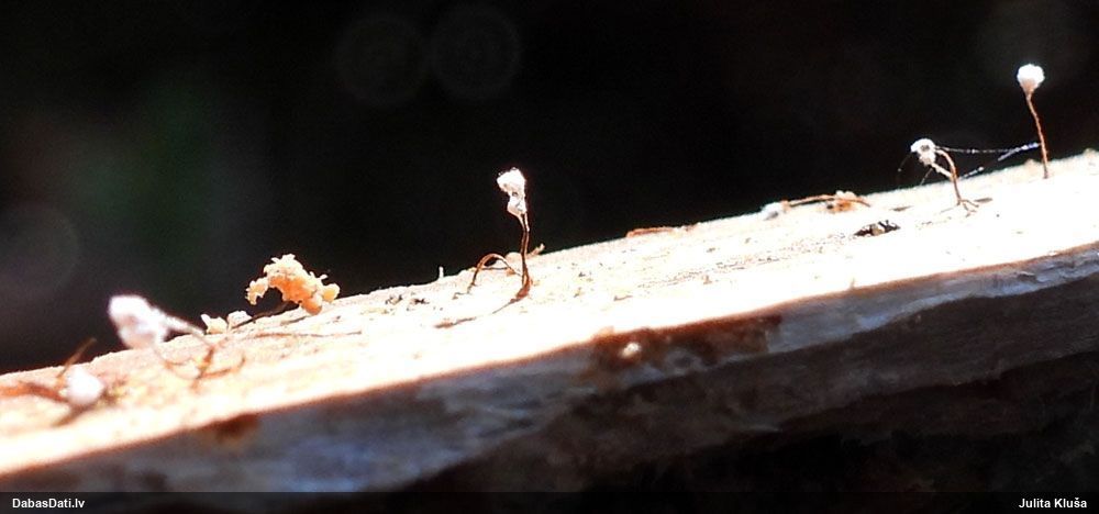 Hmm, nepievērsu tam uzmanību, bet tas interesanti, paldies! Vispār izskatās pēc vālenītes, ne kūlītes, speciāli salīdzināju aprakstus ar Stemonitis splendens, bet mikroskopiski tomēr atbilst visām kūlītes pazīmēm, un abas mikroskopētās kūlītes - vienādas. Tur kāds skujkoks blakus neaug?