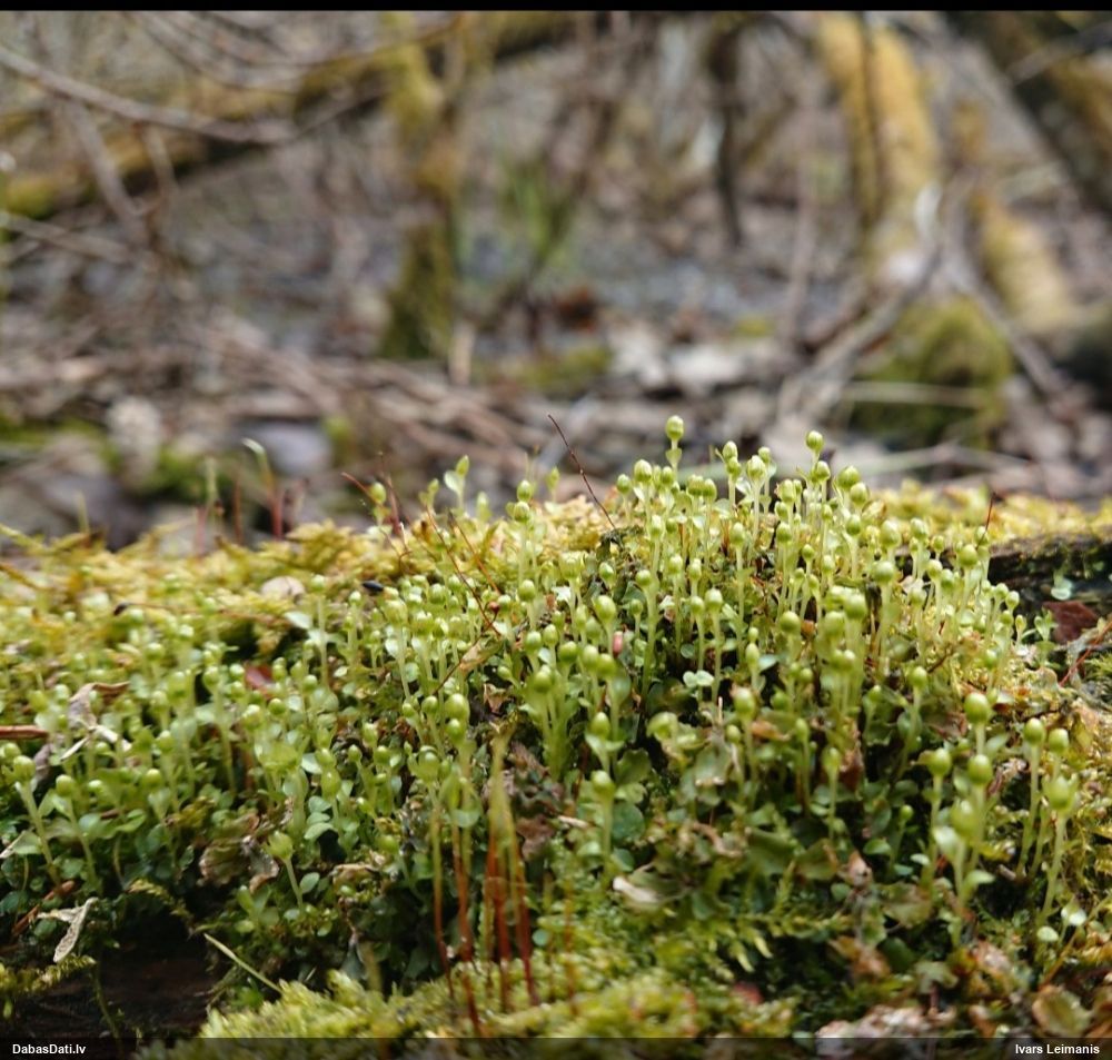 Ļoti ļoti labs atradums! Šo varētu likt aizsargājamo sugu sarakstā, jo pasaulē reti ziņota, Latvijā tikai izcilās vietās atrasta. Par laimi, paraugā bija arī nobrieduši eksemplāri, kam sporu mākonis knapi turējās klāt - un tā ir arī raksturīga sugas pazīme. Bet visuzskatāmākais te ir sporu virsmas raksts, tāpēc te svarīgi redzēt sporas vislielākajā palielinājumā.