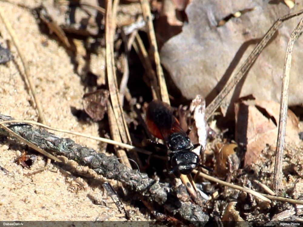 Šis tāds ne pārāk pārliecinošs. Sariņi uz segspārniem drīzāk gaiši, kaut tas varētu būt arī dēļ atspīduma. Priekškrūšu vairogs ar tā kā pārāk spalvains priekš A.sanguinolenta (varbūt atkal dēļ saules atspīduma). Arī galvas aizmugurējie stūri nav redzami. Lai paliek kā sp., ja vien nav kāda papildus informācija.
