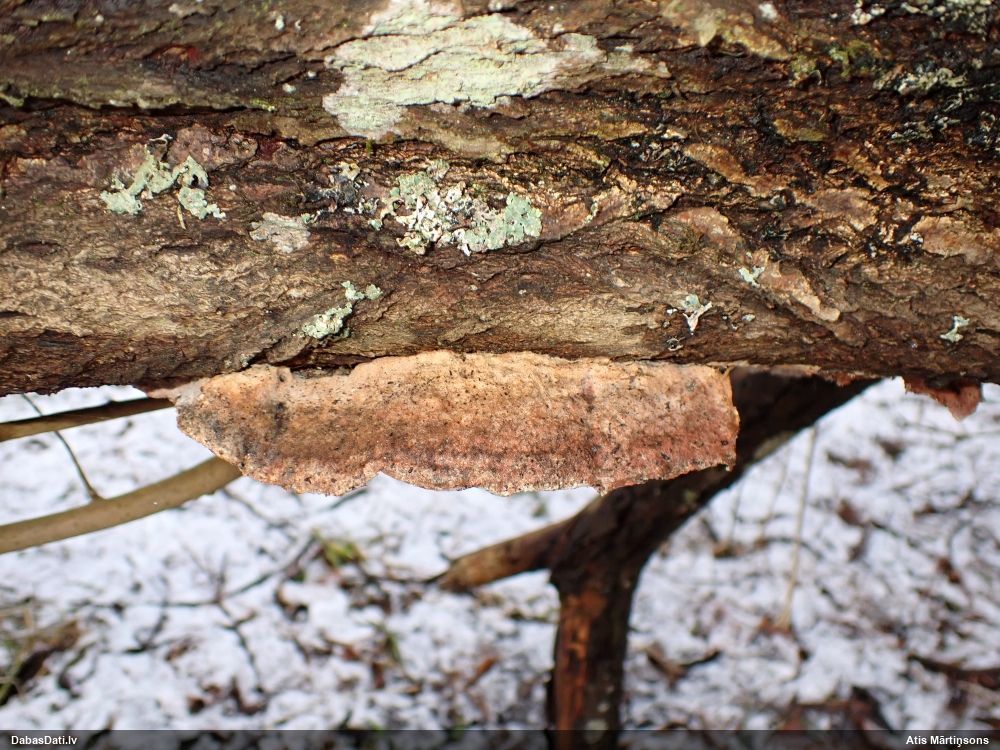 Gada sēnes 2025 sezonu noslēdzot: gan sakomunicējis pašu novērotāju, gan apsekojis uz vietas, pārliecinājos, ka tā tiešām ir 2021. gada atradne (DabasDatos nav ieziņota), tikai "aizbraukusi" par 100+ metriem uz ziemeļaustrumiem no patiesās vietas. Četras dienas vēlāk to, man klātesot, novērojis Raivo Ivulāns un ieziņojis DabasDatos (https://dabasdati.lv/lv/observation/i6u8b1t1411oup15o8nbroneg6/) jau PAREIZAJĀ vietā (taču piezīmēs ģeogr. platuma skaitliskajā vērtībā ir drukas kļūda, kuras dēļ atradne iznāktu nobīdīta par 5½ km tieši uz dienvidiem).