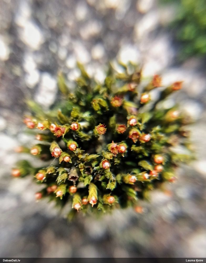 Ļoti ļoti labs atradums! Šo varētu likt aizsargājamo sugu sarakstā, jo pasaulē reti ziņota, Latvijā tikai izcilās vietās atrasta. Par laimi, paraugā bija arī nobrieduši eksemplāri, kam sporu mākonis knapi turējās klāt - un tā ir arī raksturīga sugas pazīme. Bet visuzskatāmākais te ir sporu virsmas raksts, tāpēc te svarīgi redzēt sporas vislielākajā palielinājumā.