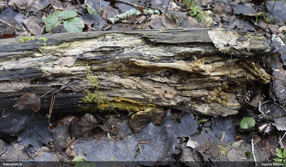 Skujkoks nav par tuvumā. Ir tikai lapu koki - lazda, kastanis, ābelītes. Otrpus celmam (D pusē) lejasdaļā, ko pamanīju pirmo, arī bija kaut kas no šim līdzīga, bet tik izsporojies, ka palicis tikai paliels brūns sporu pleķis. Intriga pavērot nākamgad.