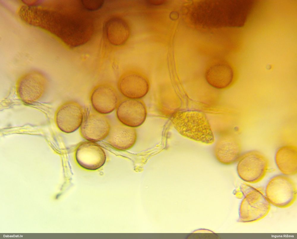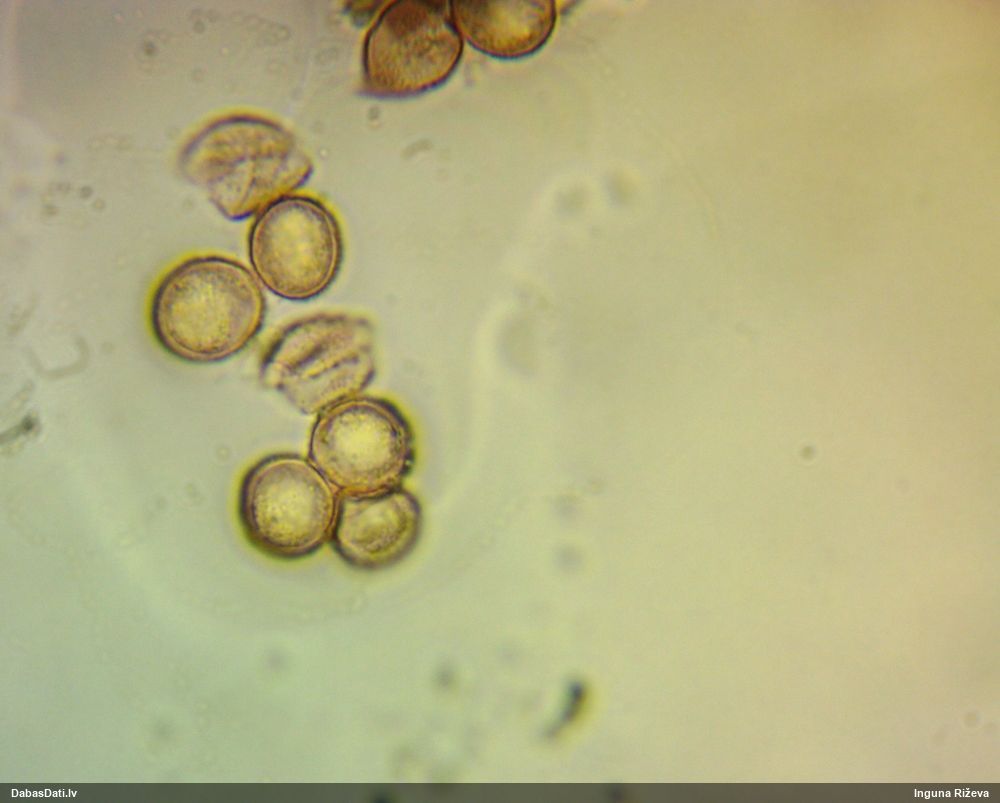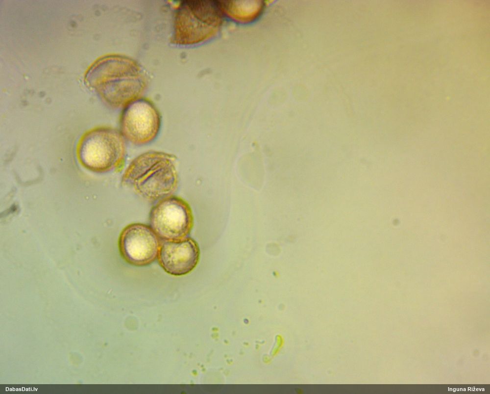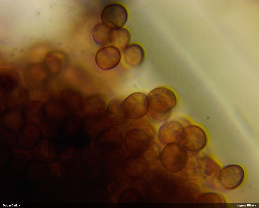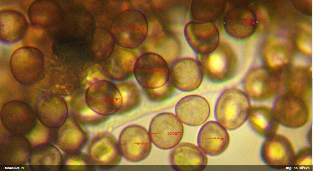 Liels paldies Vija par mikroskopējumiem!! Jā nu, saprast neko tā skaidri nevar. Šitie visi tak izskatās kā tipiski rufas, bet sporas katram citādas.. Nu kaut vai šis pats un šis: https://dabasdati.lv/lv/observation/123bcde42995588676726de1df696803/ Vizuāli pilnīgi dvīņi, un tik un tā sporas atšķiras. Un vasaras sākums un apaļas sporas - licentii šim arī nesanāks, lai arī rūsgano pakāji varētu ieskaitīt. Bez DNS pētījumiem laikam nav vērts mēģināt šos saprast.
