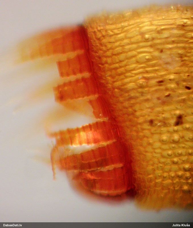 Nemikroskopēju, tikai vizuāli apskatīju. Ja kaut kad pētīšu šo sugu grupu, tad mikroskopiski pārbaudīšu.
