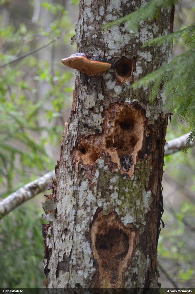 Skujkoks nav par tuvumā. Ir tikai lapu koki - lazda, kastanis, ābelītes. Otrpus celmam (D pusē) lejasdaļā, ko pamanīju pirmo, arī bija kaut kas no šim līdzīga, bet tik izsporojies, ka palicis tikai paliels brūns sporu pleķis. Intriga pavērot nākamgad.