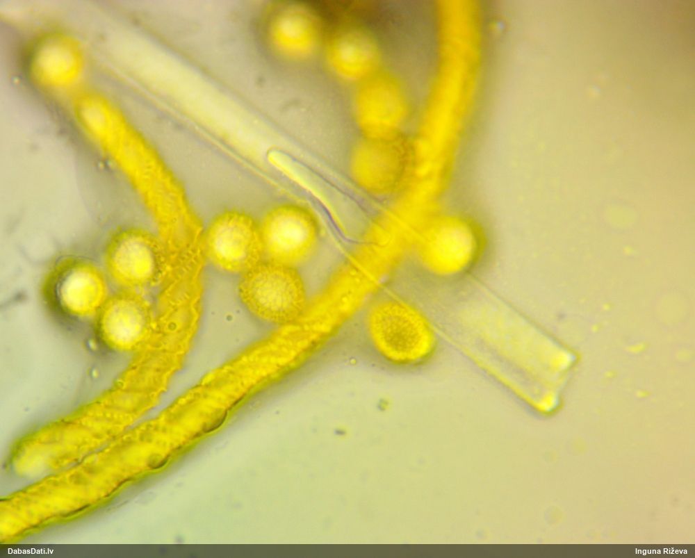 Nemikroskopēju, tikai vizuāli apskatīju. Ja kaut kad pētīšu šo sugu grupu, tad mikroskopiski pārbaudīšu.