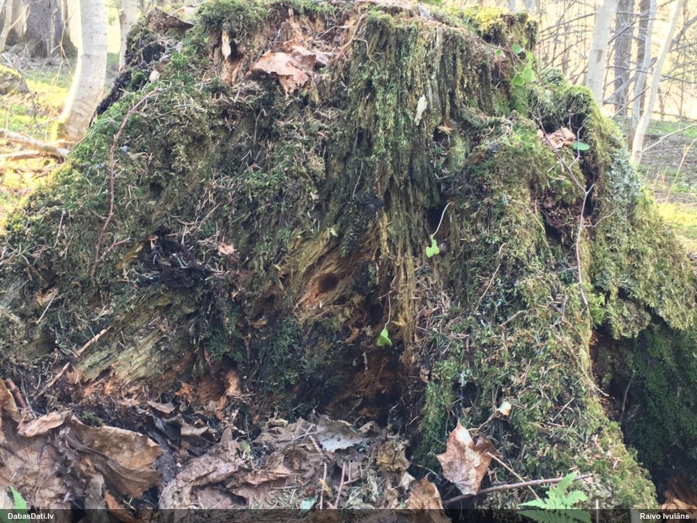 Skujkoks nav par tuvumā. Ir tikai lapu koki - lazda, kastanis, ābelītes. Otrpus celmam (D pusē) lejasdaļā, ko pamanīju pirmo, arī bija kaut kas no šim līdzīga, bet tik izsporojies, ka palicis tikai paliels brūns sporu pleķis. Intriga pavērot nākamgad.