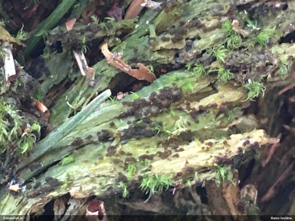 Hmm, nepievērsu tam uzmanību, bet tas interesanti, paldies! Vispār izskatās pēc vālenītes, ne kūlītes, speciāli salīdzināju aprakstus ar Stemonitis splendens, bet mikroskopiski tomēr atbilst visām kūlītes pazīmēm, un abas mikroskopētās kūlītes - vienādas. Tur kāds skujkoks blakus neaug?