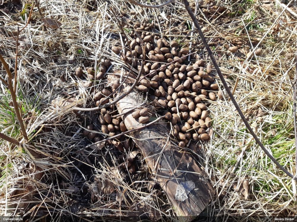 Hmm, nepievērsu tam uzmanību, bet tas interesanti, paldies! Vispār izskatās pēc vālenītes, ne kūlītes, speciāli salīdzināju aprakstus ar Stemonitis splendens, bet mikroskopiski tomēr atbilst visām kūlītes pazīmēm, un abas mikroskopētās kūlītes - vienādas. Tur kāds skujkoks blakus neaug?