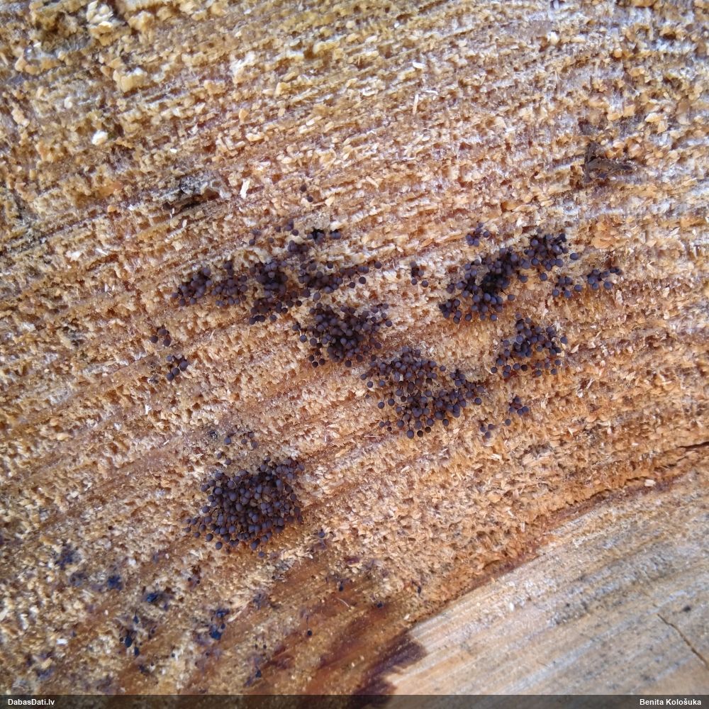 Hmm, nepievērsu tam uzmanību, bet tas interesanti, paldies! Vispār izskatās pēc vālenītes, ne kūlītes, speciāli salīdzināju aprakstus ar Stemonitis splendens, bet mikroskopiski tomēr atbilst visām kūlītes pazīmēm, un abas mikroskopētās kūlītes - vienādas. Tur kāds skujkoks blakus neaug?