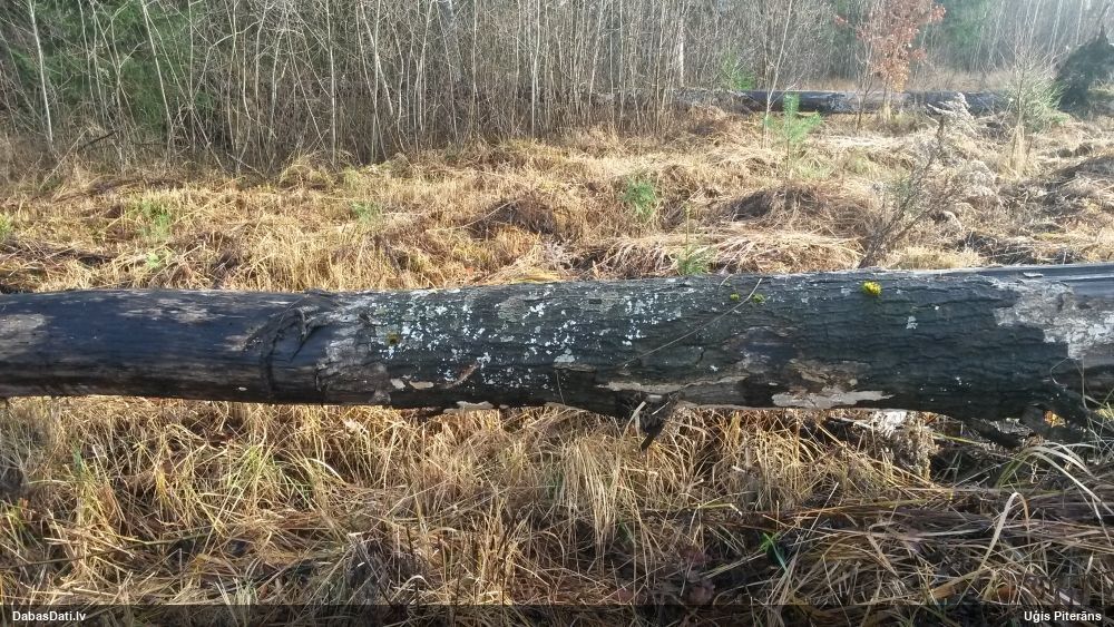 Skujkoks nav par tuvumā. Ir tikai lapu koki - lazda, kastanis, ābelītes. Otrpus celmam (D pusē) lejasdaļā, ko pamanīju pirmo, arī bija kaut kas no šim līdzīga, bet tik izsporojies, ka palicis tikai paliels brūns sporu pleķis. Intriga pavērot nākamgad.