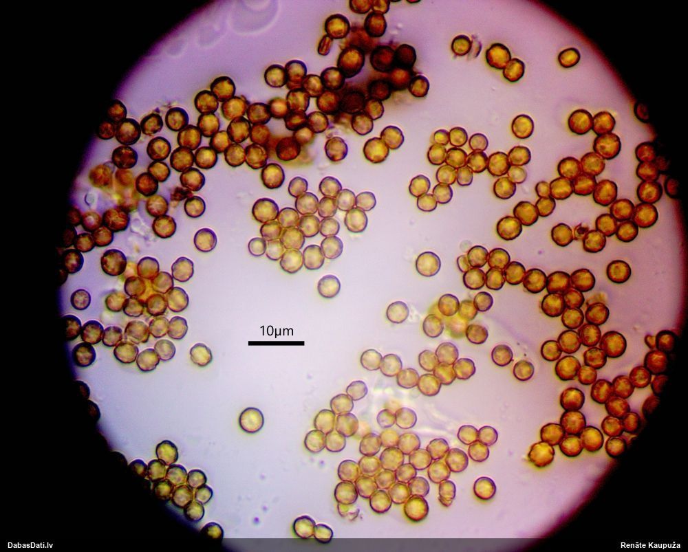 Liels paldies Vija par mikroskopējumiem!! Jā nu, saprast neko tā skaidri nevar. Šitie visi tak izskatās kā tipiski rufas, bet sporas katram citādas.. Nu kaut vai šis pats un šis: https://dabasdati.lv/lv/observation/123bcde42995588676726de1df696803/ Vizuāli pilnīgi dvīņi, un tik un tā sporas atšķiras. Un vasaras sākums un apaļas sporas - licentii šim arī nesanāks, lai arī rūsgano pakāji varētu ieskaitīt. Bez DNS pētījumiem laikam nav vērts mēģināt šos saprast.