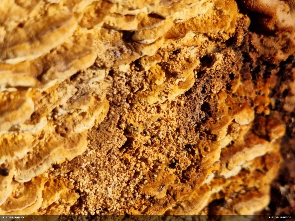 Gada sēnes 2025 sezonu noslēdzot: gan sakomunicējis pašu novērotāju, gan apsekojis uz vietas, pārliecinājos, ka tā tiešām ir 2021. gada atradne (DabasDatos nav ieziņota), tikai "aizbraukusi" par 100+ metriem uz ziemeļaustrumiem no patiesās vietas. Četras dienas vēlāk to, man klātesot, novērojis Raivo Ivulāns un ieziņojis DabasDatos (https://dabasdati.lv/lv/observation/i6u8b1t1411oup15o8nbroneg6/) jau PAREIZAJĀ vietā (taču piezīmēs ģeogr. platuma skaitliskajā vērtībā ir drukas kļūda, kuras dēļ atradne iznāktu nobīdīta par 5½ km tieši uz dienvidiem).