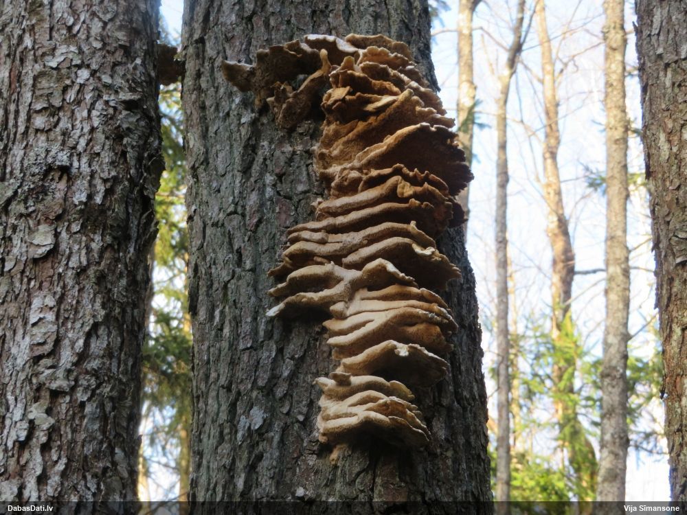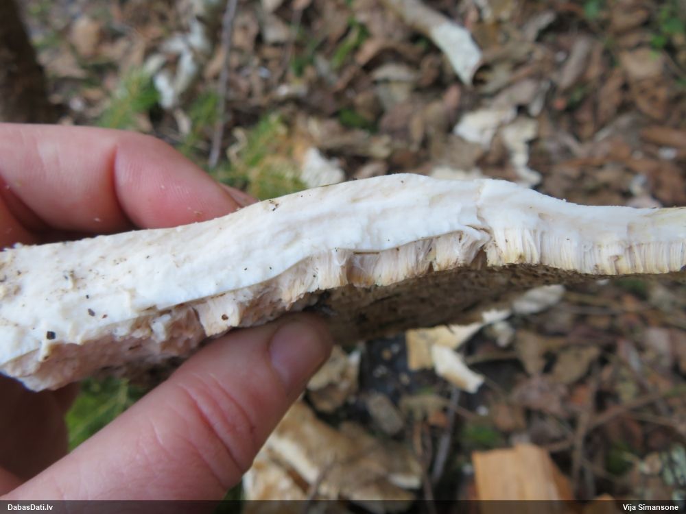 Gada sēnes 2025 sezonu noslēdzot: gan sakomunicējis pašu novērotāju, gan apsekojis uz vietas, pārliecinājos, ka tā tiešām ir 2021. gada atradne (DabasDatos nav ieziņota), tikai "aizbraukusi" par 100+ metriem uz ziemeļaustrumiem no patiesās vietas. Četras dienas vēlāk to, man klātesot, novērojis Raivo Ivulāns un ieziņojis DabasDatos (https://dabasdati.lv/lv/observation/i6u8b1t1411oup15o8nbroneg6/) jau PAREIZAJĀ vietā (taču piezīmēs ģeogr. platuma skaitliskajā vērtībā ir drukas kļūda, kuras dēļ atradne iznāktu nobīdīta par 5½ km tieši uz dienvidiem).