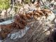 Skujkoks nav par tuvumā. Ir tikai lapu koki - lazda, kastanis, ābelītes. Otrpus celmam (D pusē) lejasdaļā, ko pamanīju pirmo, arī bija kaut kas no šim līdzīga, bet tik izsporojies, ka palicis tikai paliels brūns sporu pleķis. Intriga pavērot nākamgad.