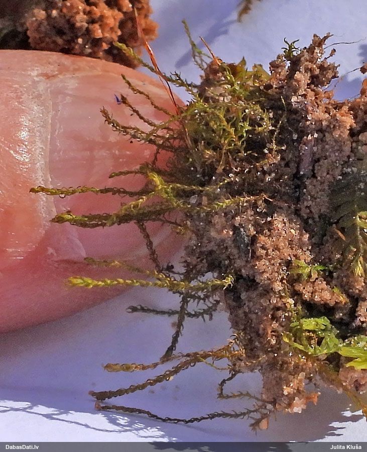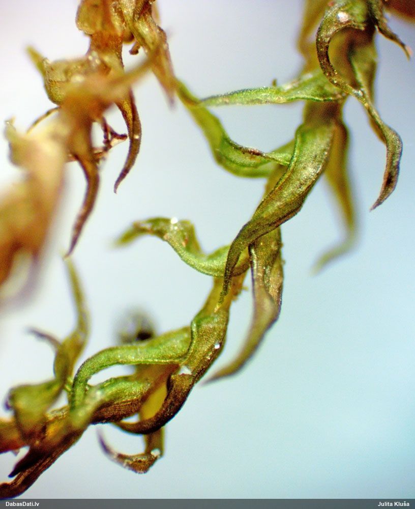 Ļoti ļoti labs atradums! Šo varētu likt aizsargājamo sugu sarakstā, jo pasaulē reti ziņota, Latvijā tikai izcilās vietās atrasta. Par laimi, paraugā bija arī nobrieduši eksemplāri, kam sporu mākonis knapi turējās klāt - un tā ir arī raksturīga sugas pazīme. Bet visuzskatāmākais te ir sporu virsmas raksts, tāpēc te svarīgi redzēt sporas vislielākajā palielinājumā.