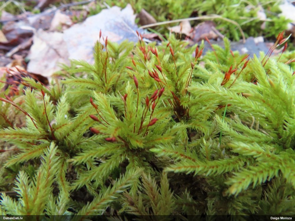 Ļoti ļoti labs atradums! Šo varētu likt aizsargājamo sugu sarakstā, jo pasaulē reti ziņota, Latvijā tikai izcilās vietās atrasta. Par laimi, paraugā bija arī nobrieduši eksemplāri, kam sporu mākonis knapi turējās klāt - un tā ir arī raksturīga sugas pazīme. Bet visuzskatāmākais te ir sporu virsmas raksts, tāpēc te svarīgi redzēt sporas vislielākajā palielinājumā.