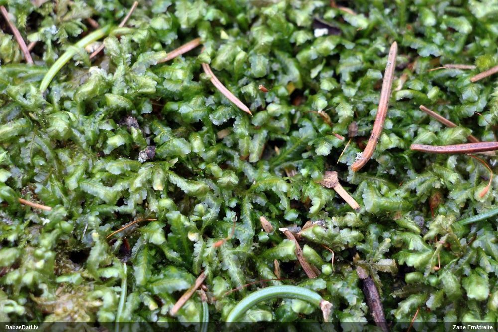 Ļoti ļoti labs atradums! Šo varētu likt aizsargājamo sugu sarakstā, jo pasaulē reti ziņota, Latvijā tikai izcilās vietās atrasta. Par laimi, paraugā bija arī nobrieduši eksemplāri, kam sporu mākonis knapi turējās klāt - un tā ir arī raksturīga sugas pazīme. Bet visuzskatāmākais te ir sporu virsmas raksts, tāpēc te svarīgi redzēt sporas vislielākajā palielinājumā.