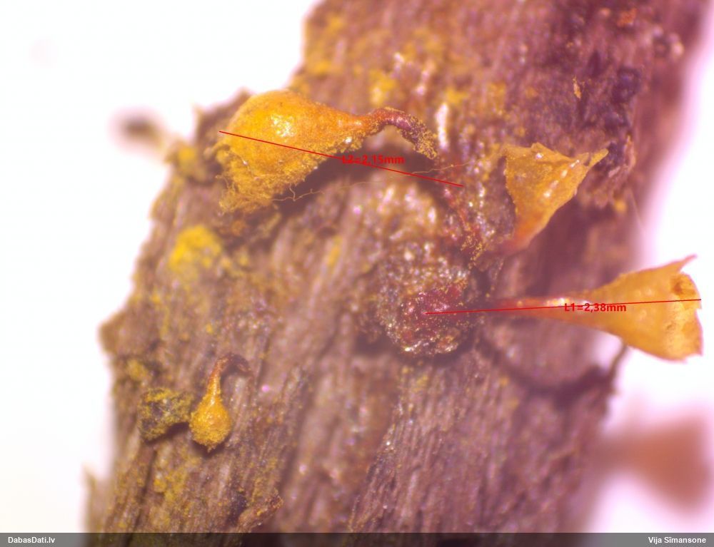 Nemikroskopēju, tikai vizuāli apskatīju. Ja kaut kad pētīšu šo sugu grupu, tad mikroskopiski pārbaudīšu.