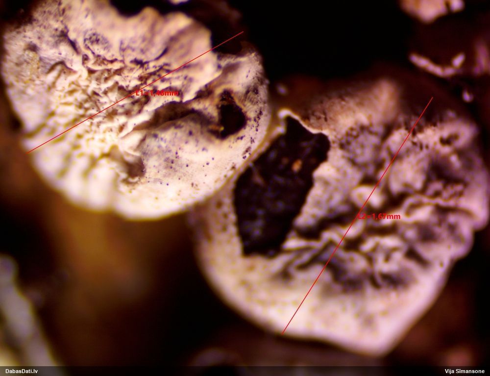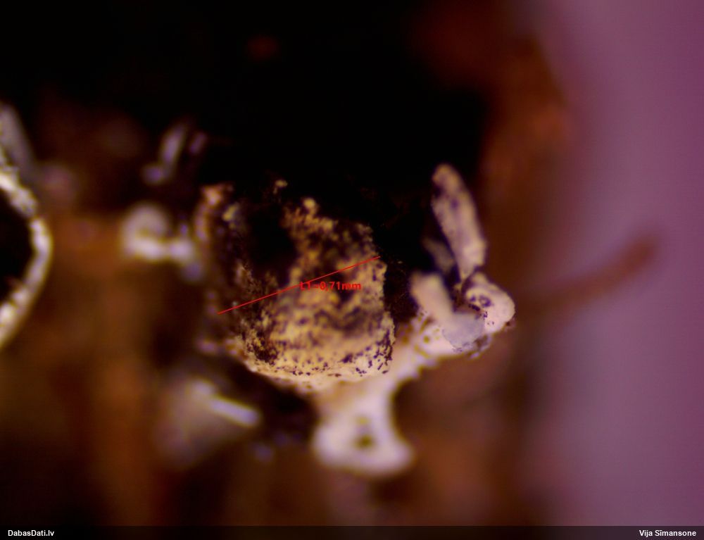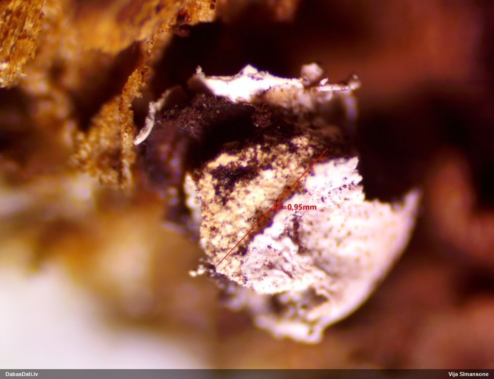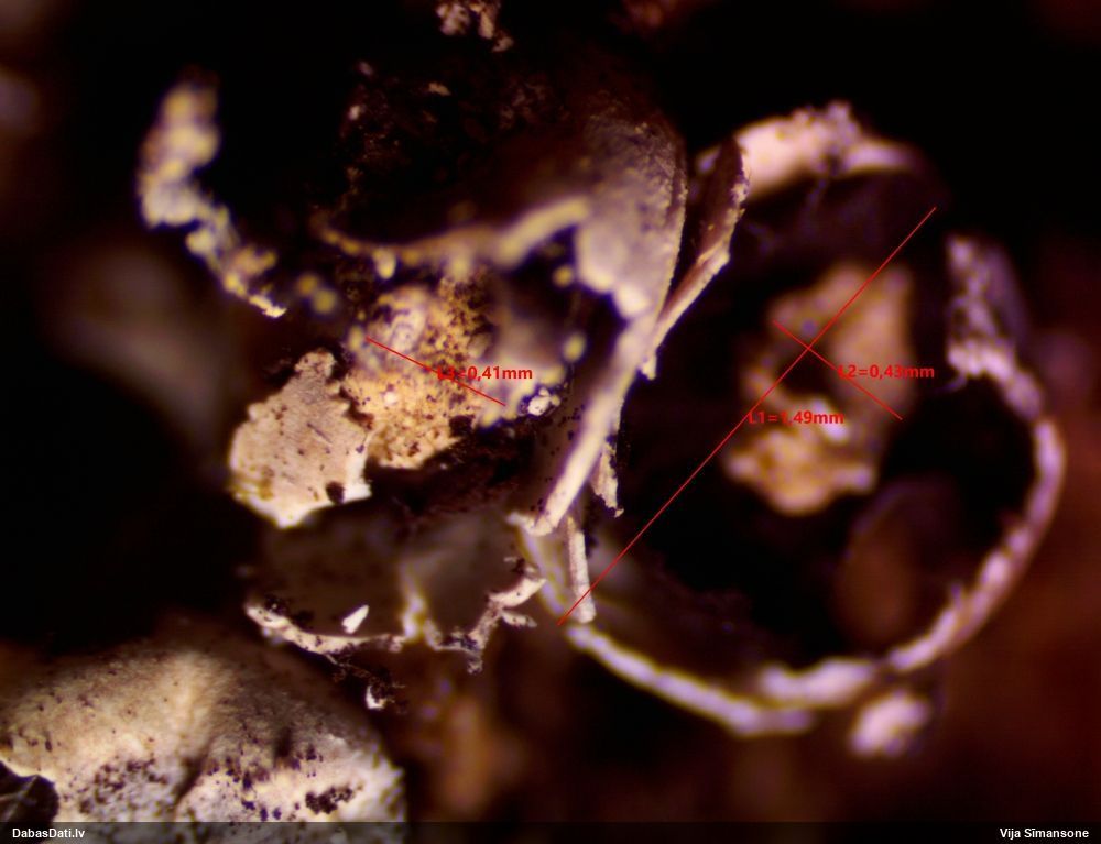 Nemikroskopēju, tikai vizuāli apskatīju. Ja kaut kad pētīšu šo sugu grupu, tad mikroskopiski pārbaudīšu.