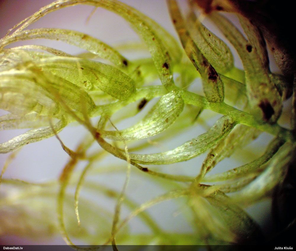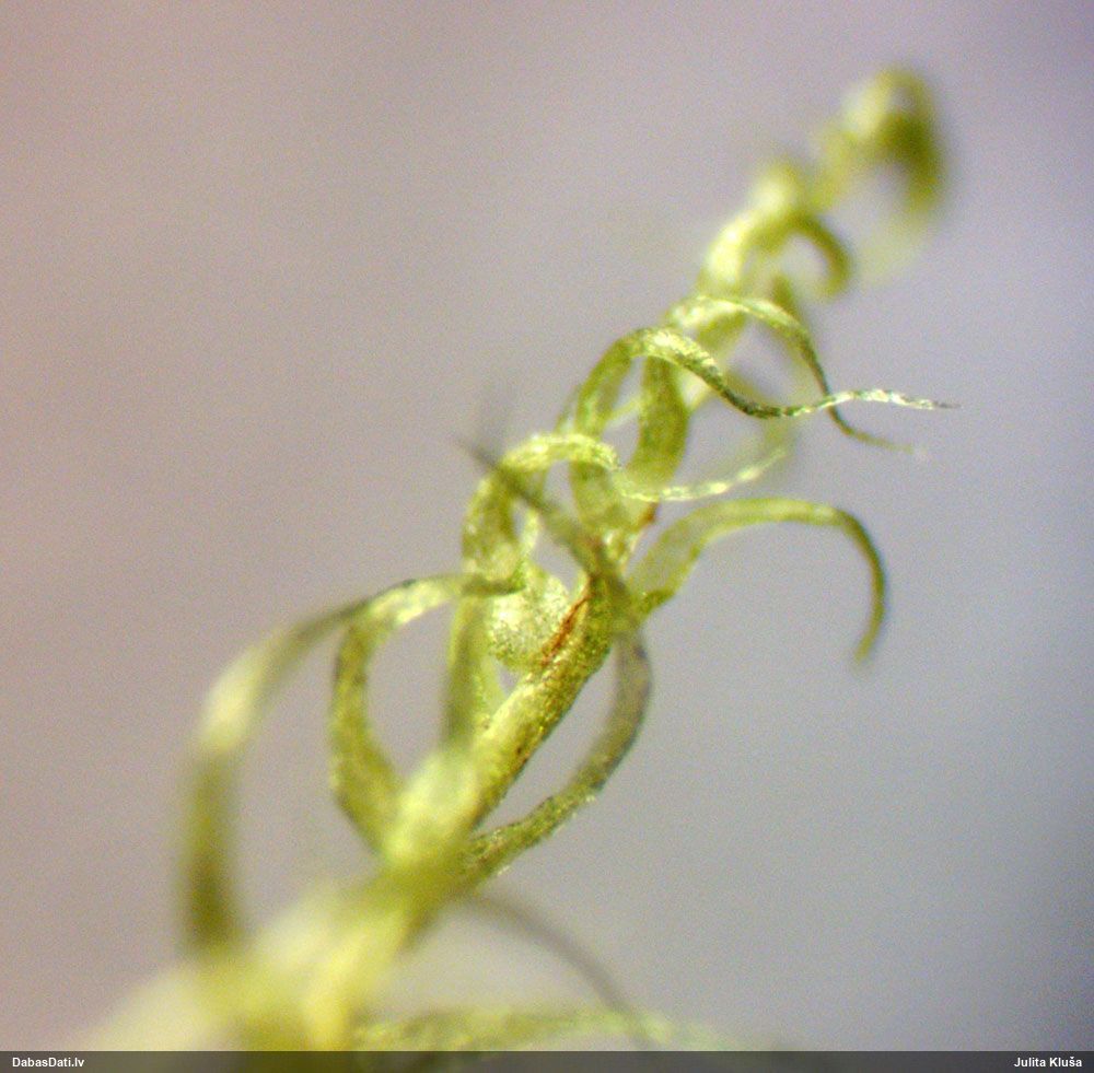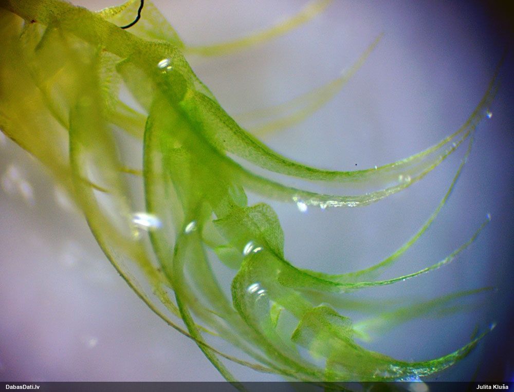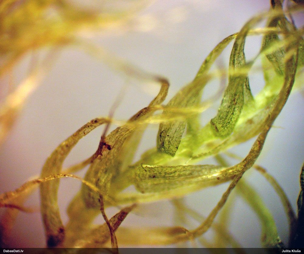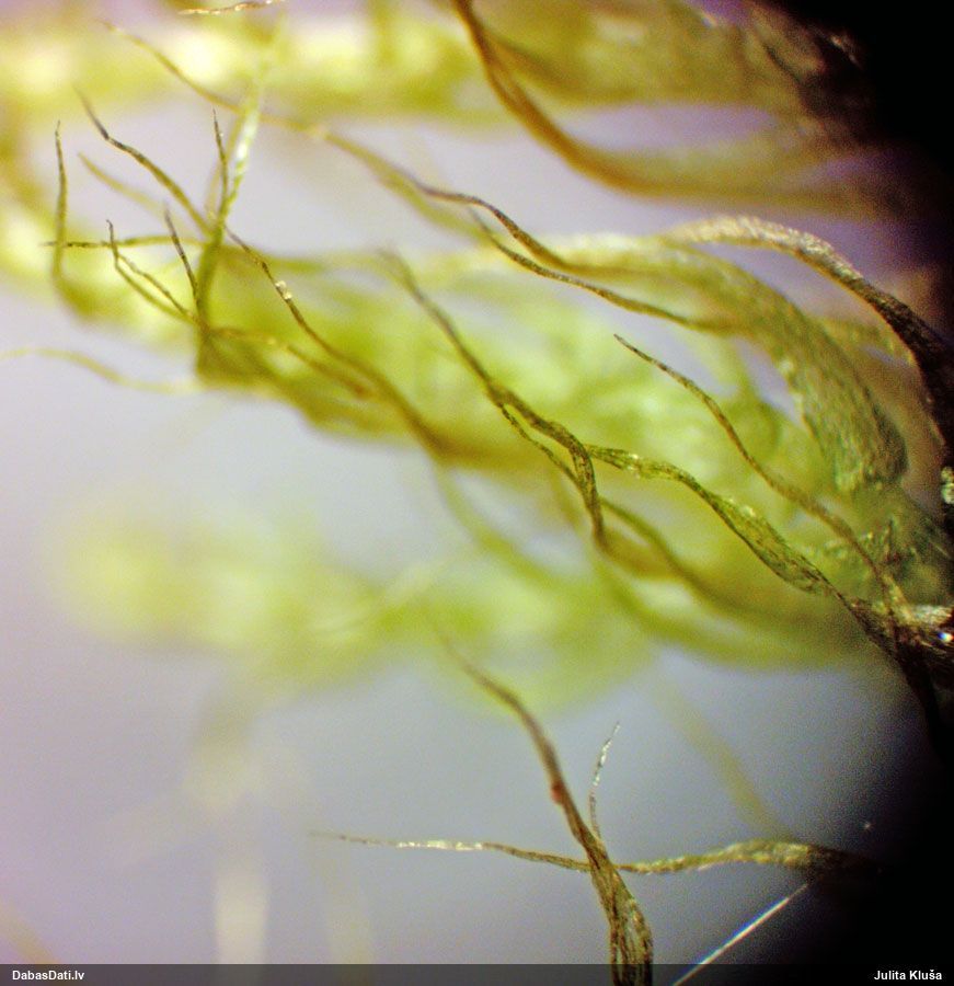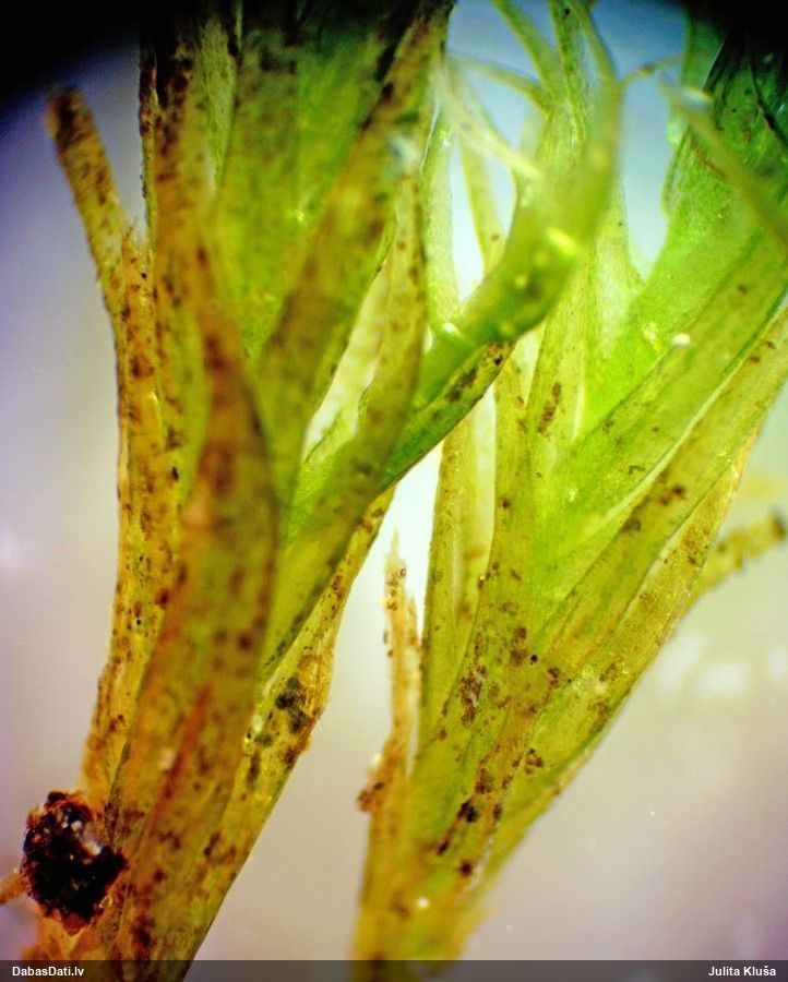 Ļoti ļoti labs atradums! Šo varētu likt aizsargājamo sugu sarakstā, jo pasaulē reti ziņota, Latvijā tikai izcilās vietās atrasta. Par laimi, paraugā bija arī nobrieduši eksemplāri, kam sporu mākonis knapi turējās klāt - un tā ir arī raksturīga sugas pazīme. Bet visuzskatāmākais te ir sporu virsmas raksts, tāpēc te svarīgi redzēt sporas vislielākajā palielinājumā.