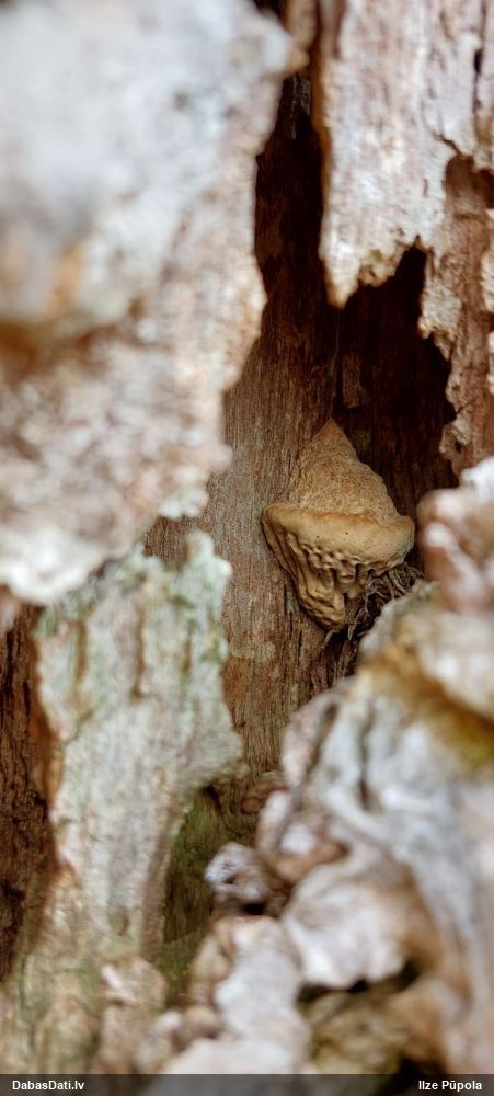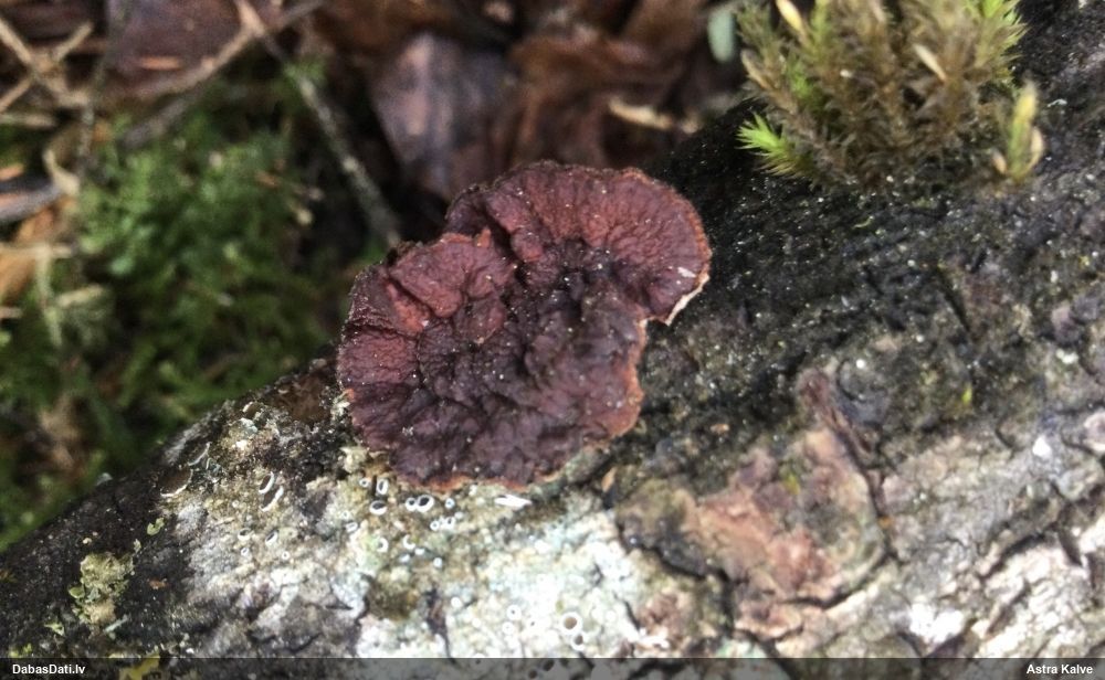Gada sēnes 2025 sezonu noslēdzot: gan sakomunicējis pašu novērotāju, gan apsekojis uz vietas, pārliecinājos, ka tā tiešām ir 2021. gada atradne (DabasDatos nav ieziņota), tikai "aizbraukusi" par 100+ metriem uz ziemeļaustrumiem no patiesās vietas. Četras dienas vēlāk to, man klātesot, novērojis Raivo Ivulāns un ieziņojis DabasDatos (https://dabasdati.lv/lv/observation/i6u8b1t1411oup15o8nbroneg6/) jau PAREIZAJĀ vietā (taču piezīmēs ģeogr. platuma skaitliskajā vērtībā ir drukas kļūda, kuras dēļ atradne iznāktu nobīdīta par 5½ km tieši uz dienvidiem).