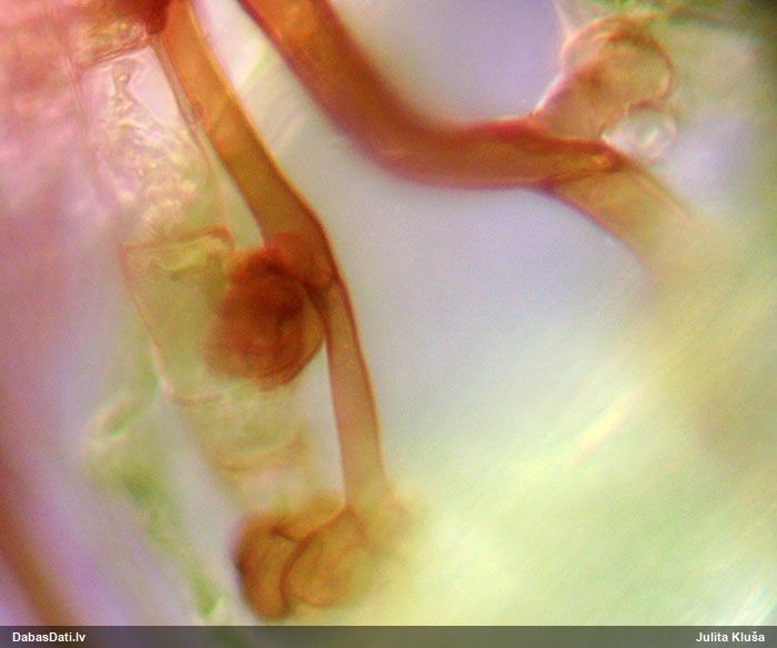 Nemikroskopēju, tikai vizuāli apskatīju. Ja kaut kad pētīšu šo sugu grupu, tad mikroskopiski pārbaudīšu.