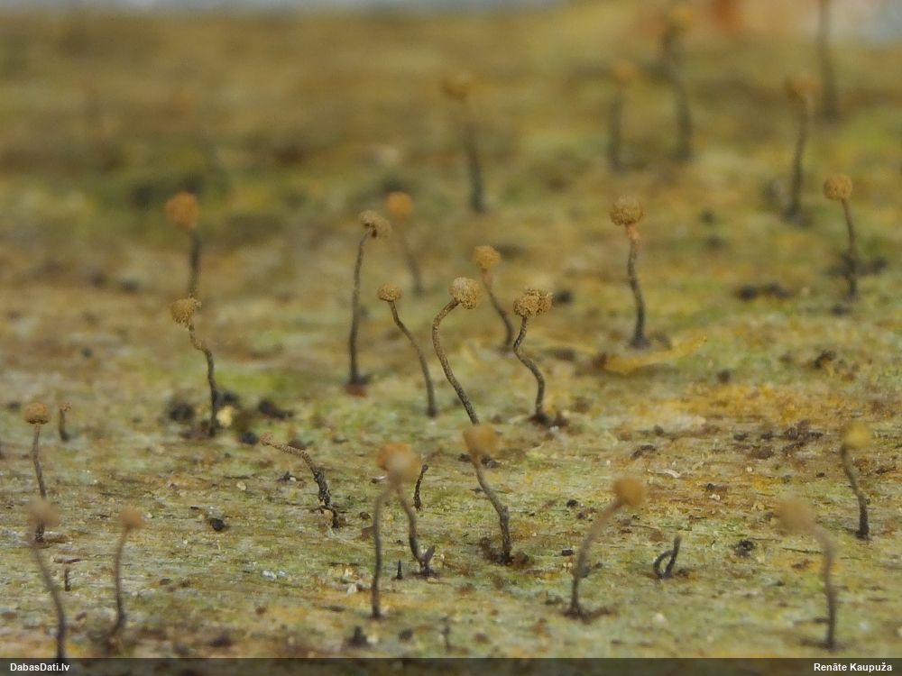 Hmm, nepievērsu tam uzmanību, bet tas interesanti, paldies! Vispār izskatās pēc vālenītes, ne kūlītes, speciāli salīdzināju aprakstus ar Stemonitis splendens, bet mikroskopiski tomēr atbilst visām kūlītes pazīmēm, un abas mikroskopētās kūlītes - vienādas. Tur kāds skujkoks blakus neaug?