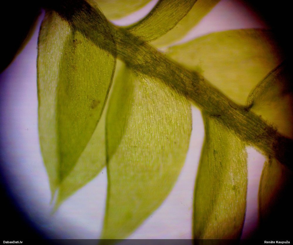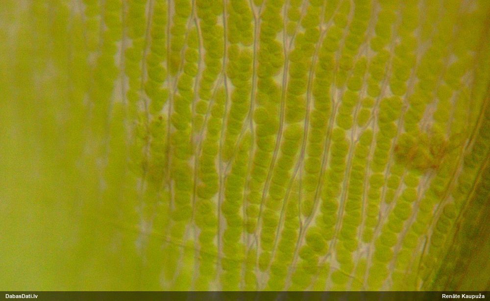 Ļoti ļoti labs atradums! Šo varētu likt aizsargājamo sugu sarakstā, jo pasaulē reti ziņota, Latvijā tikai izcilās vietās atrasta. Par laimi, paraugā bija arī nobrieduši eksemplāri, kam sporu mākonis knapi turējās klāt - un tā ir arī raksturīga sugas pazīme. Bet visuzskatāmākais te ir sporu virsmas raksts, tāpēc te svarīgi redzēt sporas vislielākajā palielinājumā.