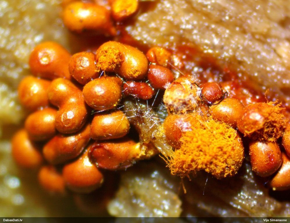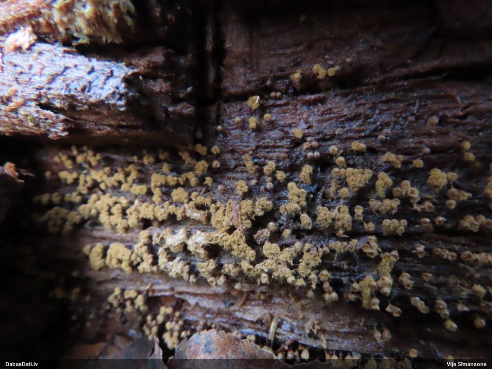 Jā, es par Tavu jau biju pieņēmusi lēmumu par Physarum oblatum, kam ir daudzveidīgas izpausmes, bet pirms gala vārda vēl paņēmu Maritas, kas šķita līdzīgs, bet ar baltu kāju, kas gan neiederētos pie oblatum. Nu un tā jūsu kopdarbs kopā ar Nannengu aizveda līdz rezultātam :)). Šitie dzeltenie ir Dievišķi no skata, bet velnišķīgi priekš noteikšanas.
