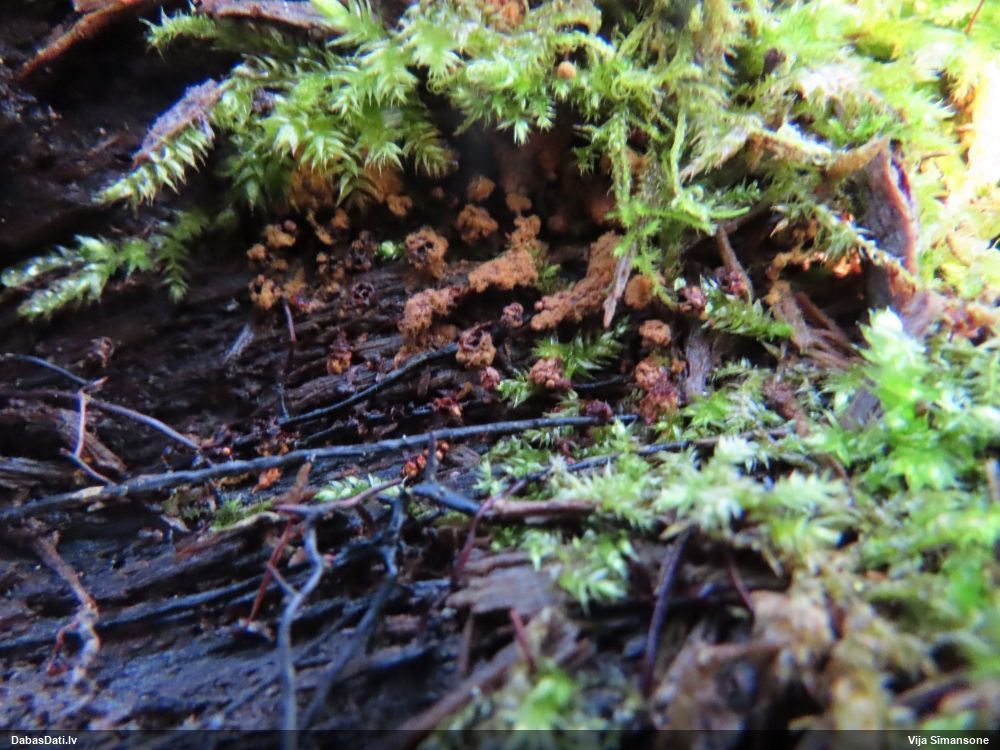 Paldies, Renāt, interesantas versijas. Man šķiet, ka tās abas tā kā vairāk uz augsnes aug (vismaz Bryoclavula dryalisepiplutea vienīgā atradne Eiropā (Nīderlandē) ir uz augsnes). Šī uz kritalas auga (vainīgs, neesmu piezīmēs aprakstījis substrātu).