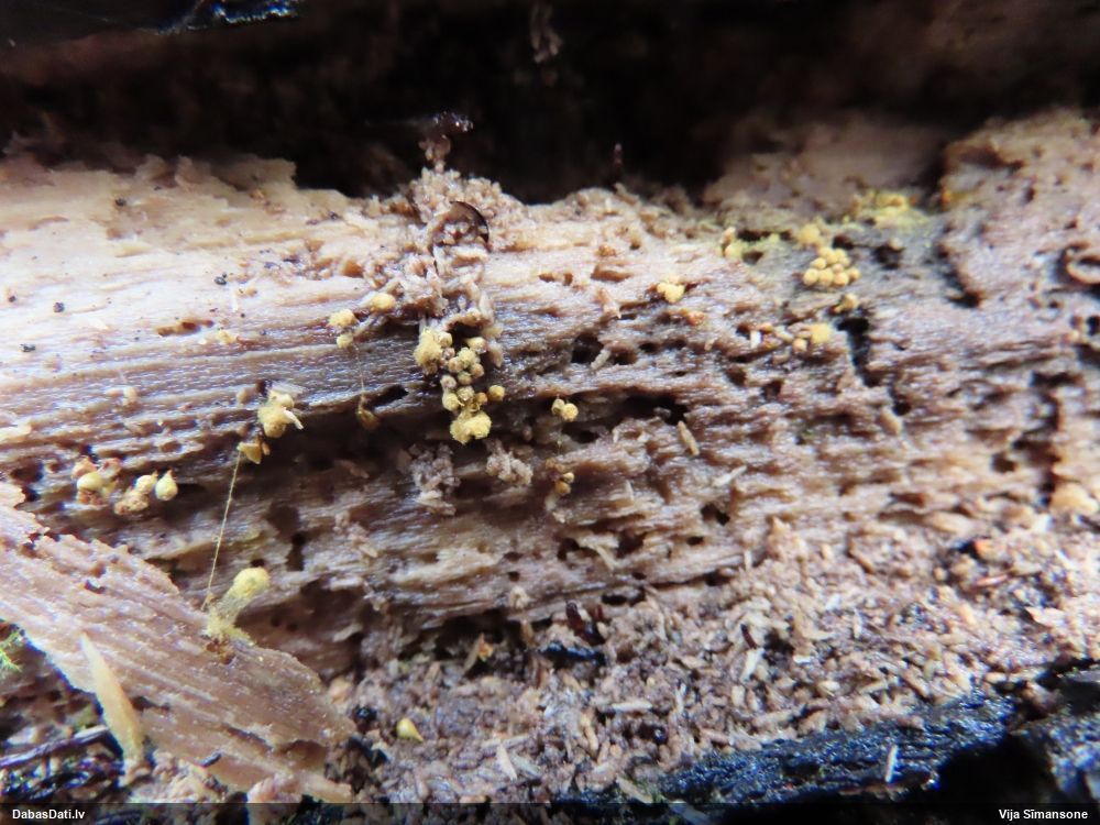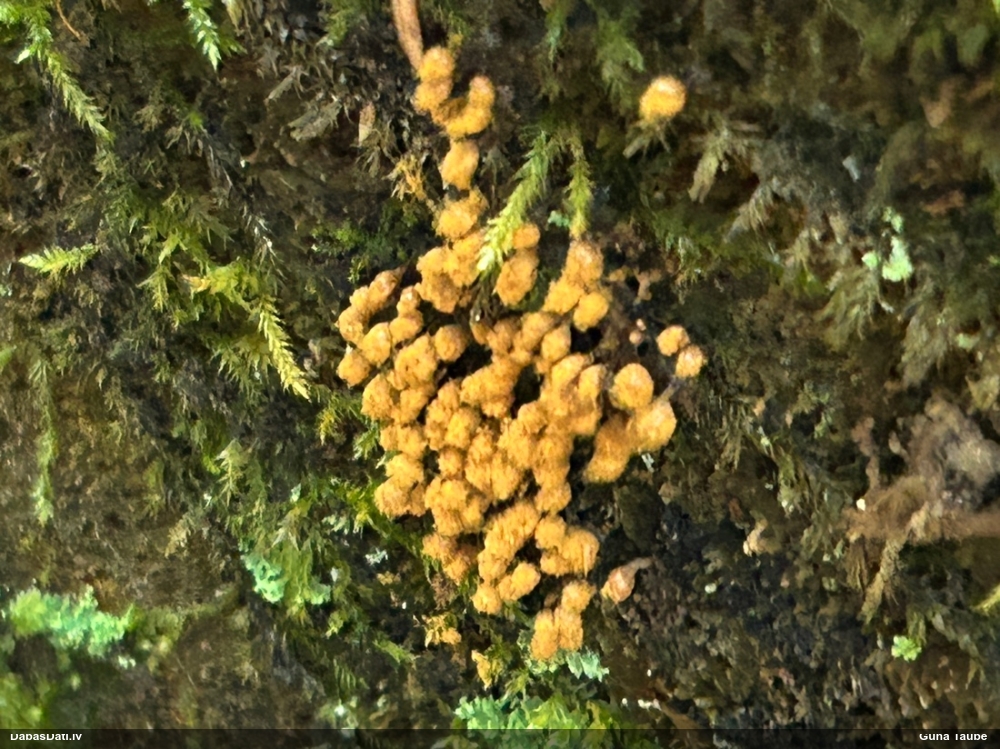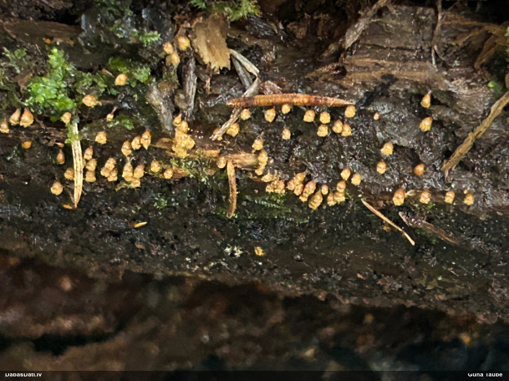 Jā, es par Tavu jau biju pieņēmusi lēmumu par Physarum oblatum, kam ir daudzveidīgas izpausmes, bet pirms gala vārda vēl paņēmu Maritas, kas šķita līdzīgs, bet ar baltu kāju, kas gan neiederētos pie oblatum. Nu un tā jūsu kopdarbs kopā ar Nannengu aizveda līdz rezultātam :)). Šitie dzeltenie ir Dievišķi no skata, bet velnišķīgi priekš noteikšanas.