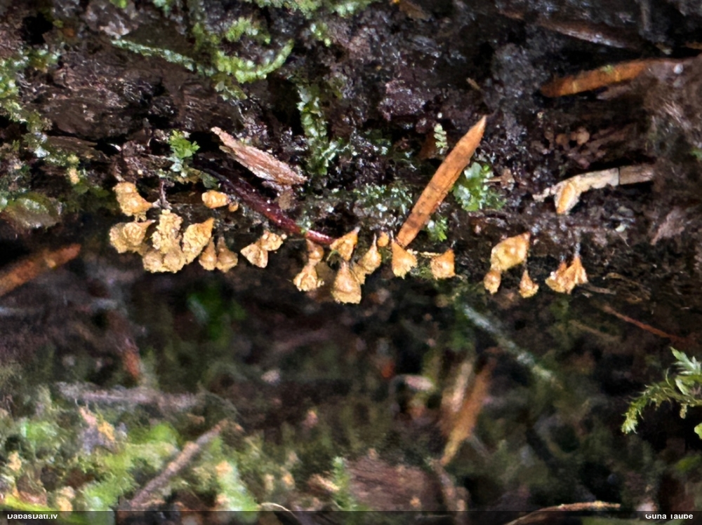 Paldies, Renāt, interesantas versijas. Man šķiet, ka tās abas tā kā vairāk uz augsnes aug (vismaz Bryoclavula dryalisepiplutea vienīgā atradne Eiropā (Nīderlandē) ir uz augsnes). Šī uz kritalas auga (vainīgs, neesmu piezīmēs aprakstījis substrātu).