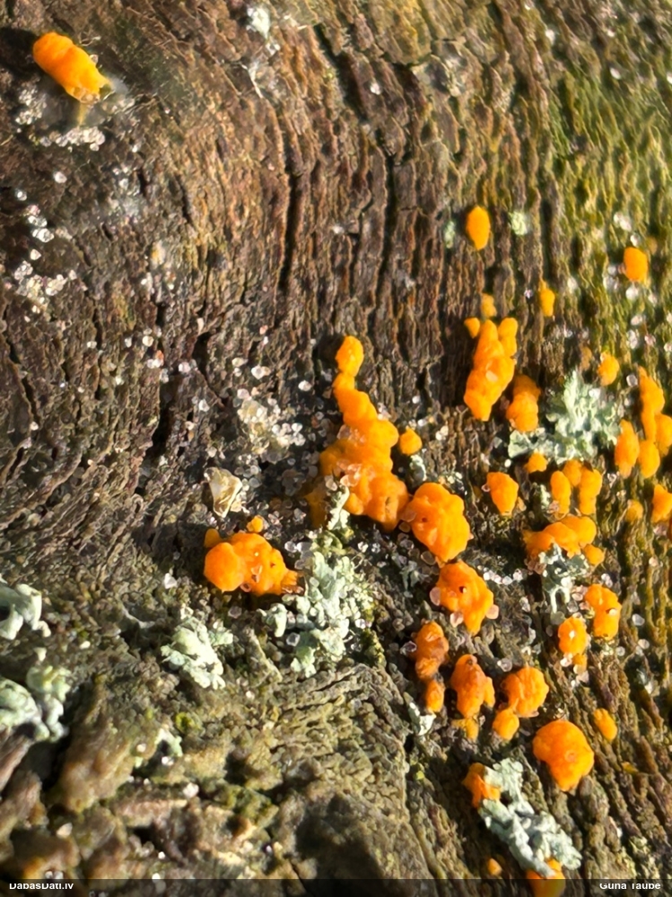 Žākle ābelei nebija traumēta, bet tā kā koks ir ļoti vecs, varbūt mizas virsējās nedzīvās plēksnes rada beigtā koka efektu. Vai arī šī gļotsēne aug arī uz dzīviem kokiem :)