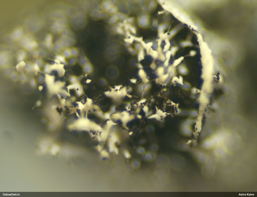 Jā, tā vajadzētu būt. Izdevās arī izķidāt kolumellu, tikai bildes gan nav diez cik veiksmīgas. Man liekas, ka nav īsti pareizi attīstījies, jo ir daudz ļoti gaišu sporu, kam arī kārpas, šķiet, nav noformējušās. Iespējams, tāpēc arī ir tās tumšās - pietrūcis kaļķa..